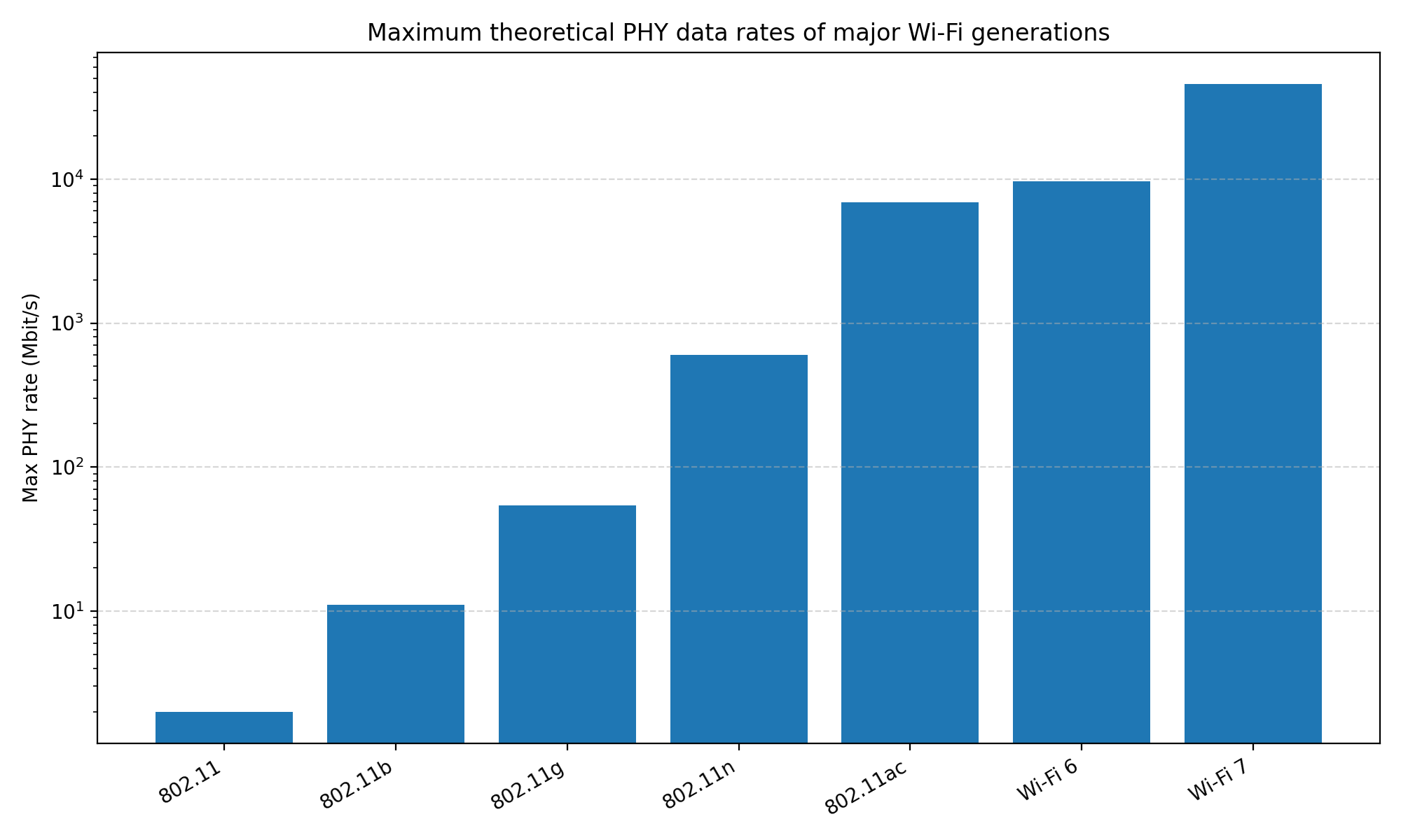 图2:Maximum PHY Data Rates of Major Wi-Fi Standards