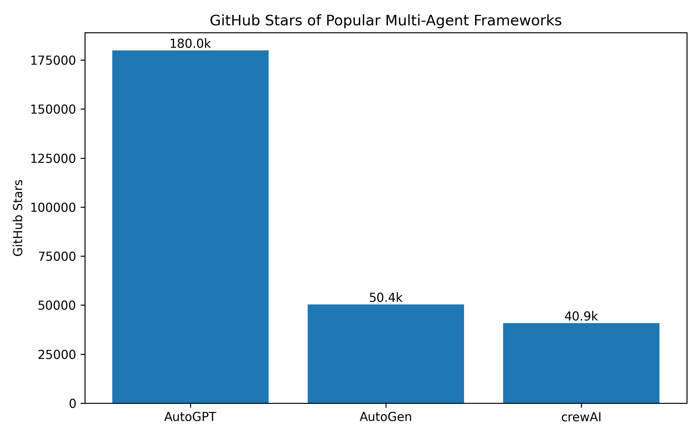 AutoGen 被微软官方描述为 “用于构建 AI Agents 并促进多 Agent 协作的开源编程框架”,可以让多个 Agent 相互对话,通过 LLM、工具调用以及人类参与的不同组合模式来解决任务。(GitHub Microsoft) 根据 2025 年 10 月的更新讨论,AutoGen 项目在两年间完成了 98 次发布、3776 次提交和 2488 个 Issue 处理,在 GitHub 上获得了约 5.04 万颗星。(GitHub) AutoGPT 则是 2023 年最早引爆 “自主任务执行” 话题的项目之一,在其 GitHub 仓库中可以看到到 2025 年时 Star 数已达到约 18 万,Fork 数约 4.62 万。(GitHub) CrewAI 作为一个强调角色扮演与团队协作的多智能体框架,在 GitHub 主仓库上拥有约 4.09 万颗星,官方站点则以 “40k+ Stars”“60% 的财富 500 强公司使用 CrewAI” 来介绍其生态影响力。(GitHub)