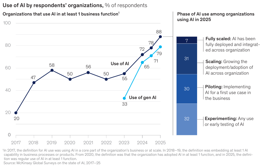 [1] McKinsey Global Institute. (2025). The State of AI in 2025: Agents, Innovation, and Transformation. McKinsey & Company.