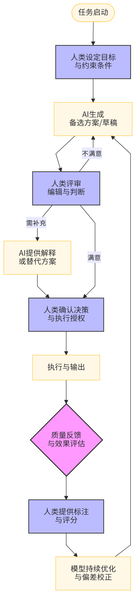 无论 AI 能力多强,“增强智能”范式都要求在人机协作链路上保留清晰、可审计的人类责任节点。具体来说,在决策、执行和反馈三个阶段,都应至少有一个明确的“人类守门人”: