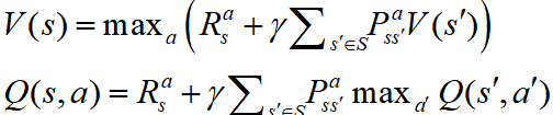 $$V_{k+1}(s) = \max_a \left( R_s^a + \gamma \sum_{s' \in S} P_{ss'}^a V_k(s') \right)$$