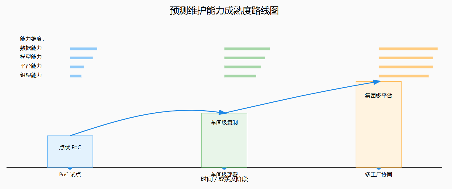 图5:预测维护从 PoC 到规模化的能力成熟度演进路线图