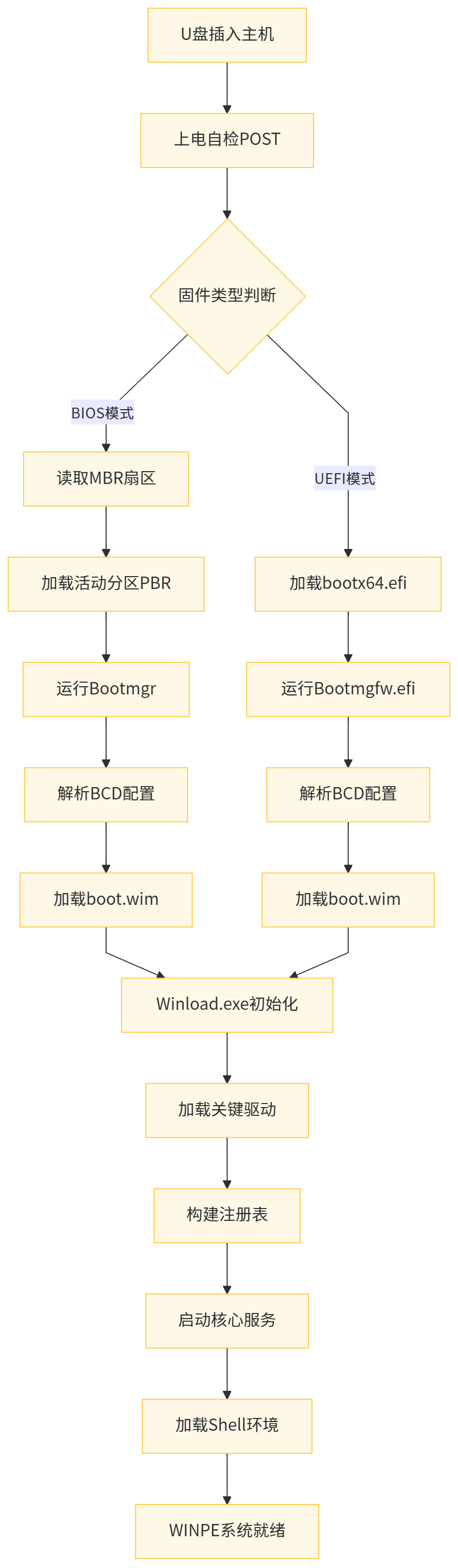要深刻理解U盘启动WINPE的完整技术链条,必须首先剖析计算机从上电到加载操作系统的底层启动流程。当按下电源按钮的瞬间,CPU重置向量指向主板固件(BIOS或UEFI)的入口点,此时系统处于实模式,可用内存被限制在1MB以下。固件的首要任务是执行加电自检(POST),初始化内存控制器、PCIe根复合体、USB主控制器等关键硬件组件。完成硬件初始化后,固件开始遍历启动项列表,按照预设顺序尝试从各类存储设备加载引导代码。对于U盘启动场景,固件通过USB大容量存储类(Mass Storage Class)协议与U盘建立通信,识别设备描述符、配置描述符、端点描述符等USB标准数据结构,最终将U盘模拟为类似SATA硬盘的块设备。