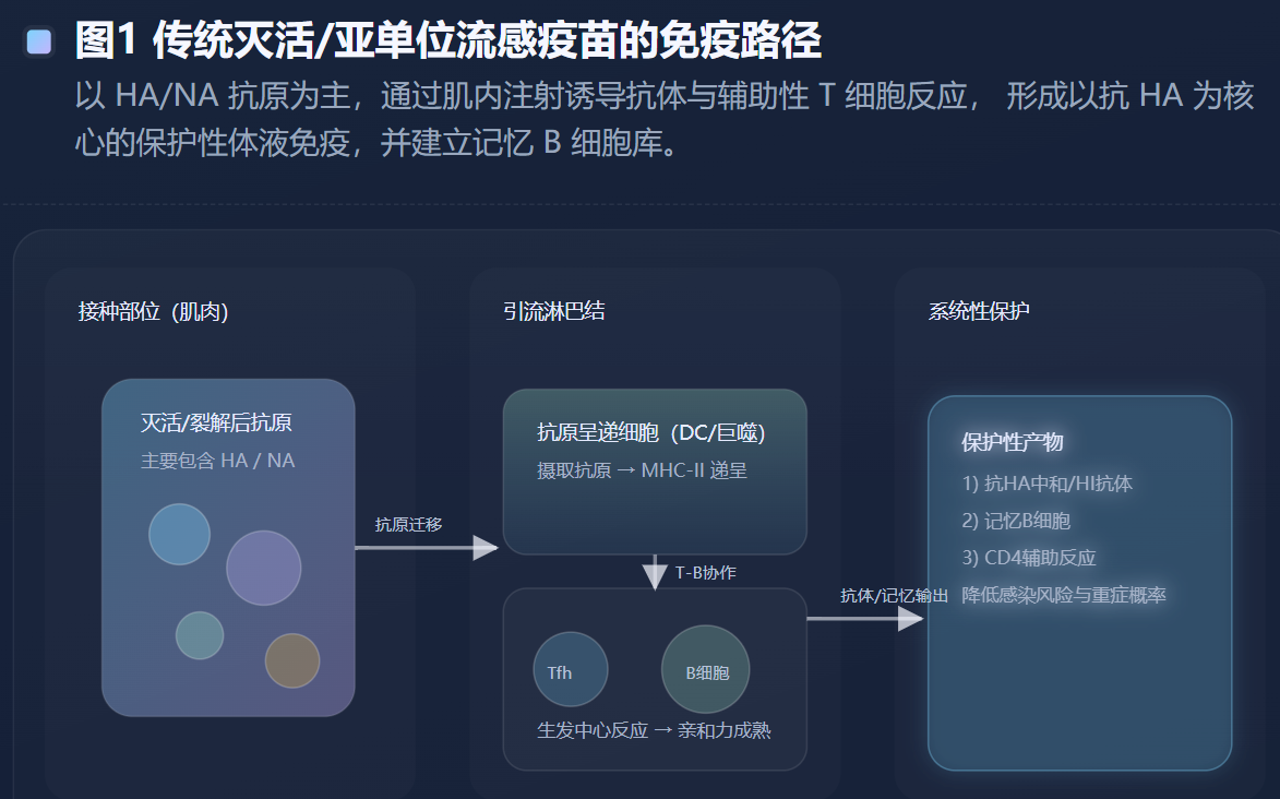这三条轴线共同指向一个趋势:未来的流感疫苗评估体系很可能从“单一血清学阈值”逐步走向“多参数保护概率模型”。在这个模型中,抗体的量与质、细胞免疫的广度与功能状态、黏膜屏障的即时响应能力,将共同决定一个人在特定季节、面对特定流行株时的真实风险。