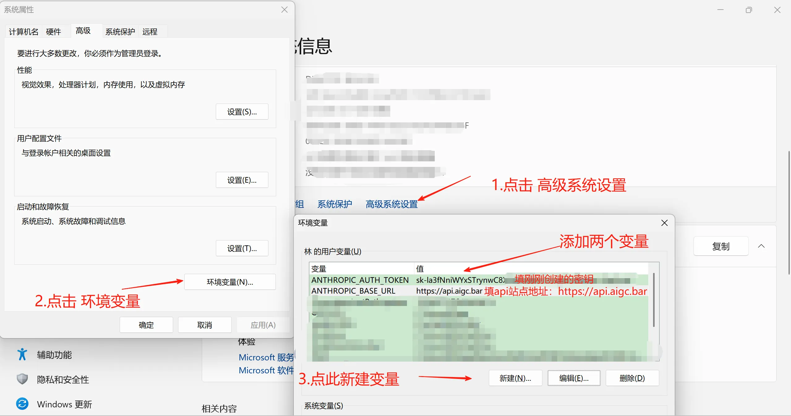 ANTHROPIC_BASE_URL,变量值:https://api.aigc.bar - 点击"确定"保存