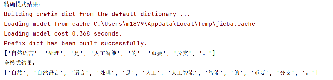 从这个例子可以看出,全模式确实产生了很多重叠的结果。对于需要精确分词进行文本分析的场景,全模式通常不是最优选择。