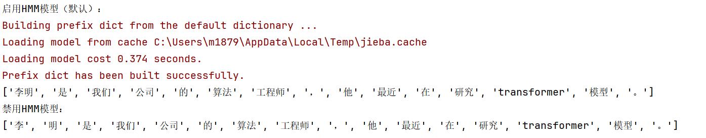 另一个重要的参数是HMM,这控制是否使用隐马尔可夫模型来处理未知词。当HMM=True(默认值)时,Jieba会对词典中不存在的词使用HMM模型进行识别,这有助于提高对新词和未知词的处理能力。当HMM=False时,关闭这个功能,对于不在词典中的字符序列,会直接分割为单个字符。