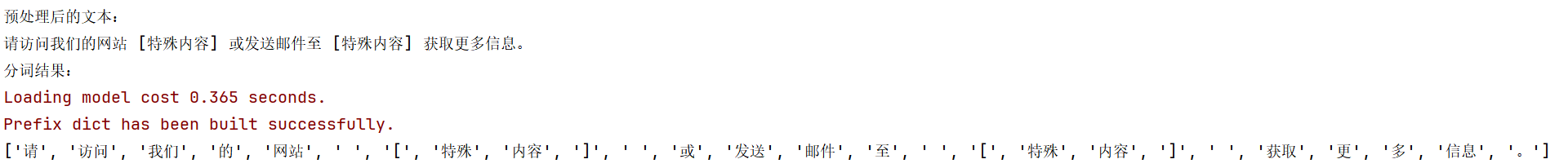如果文本中包含URL或邮箱等不需要分词的部分,用户可能需要使用正则表达式进行预处理,在分词前将这些内容替换为占位符,或者在分词后进行后处理。