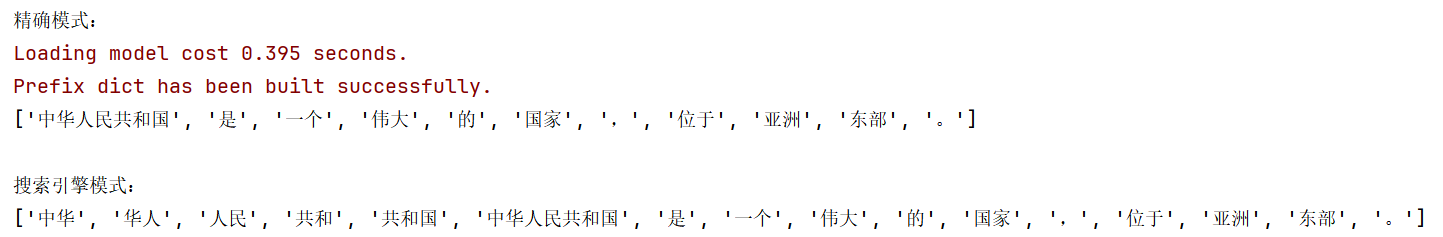 可以看到,精确模式给出了更精简、准确的结果,而全模式穷举了所有可能的词组合。