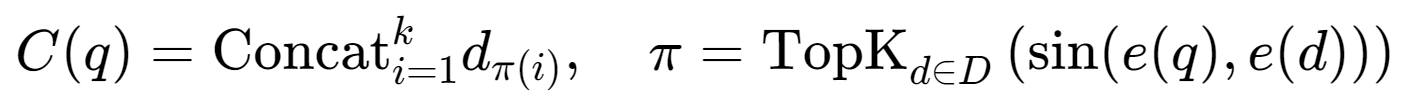 用一个简化的检索流程表达式,可以把“查询q构建上下文C(q)”写成: