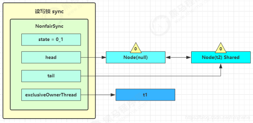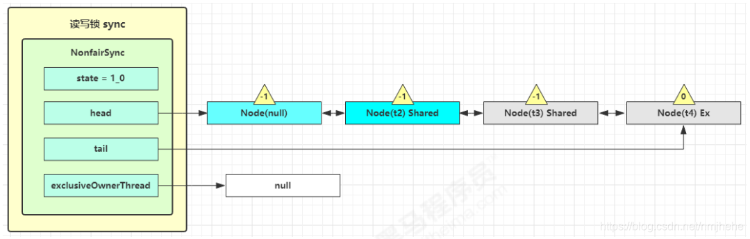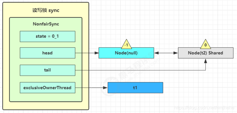 读写锁用的是同一个 Sycn 同步器,因此等待队列、state 等也是同一个
