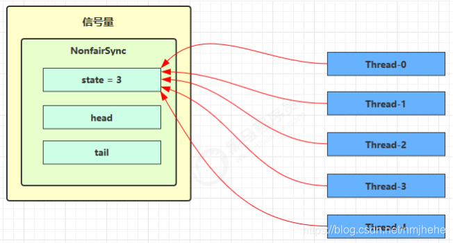 行到某个需要“同步”的时刻调用 await() 方法进行等待,当等待的线程数满足『计数个数』时,继续执行
