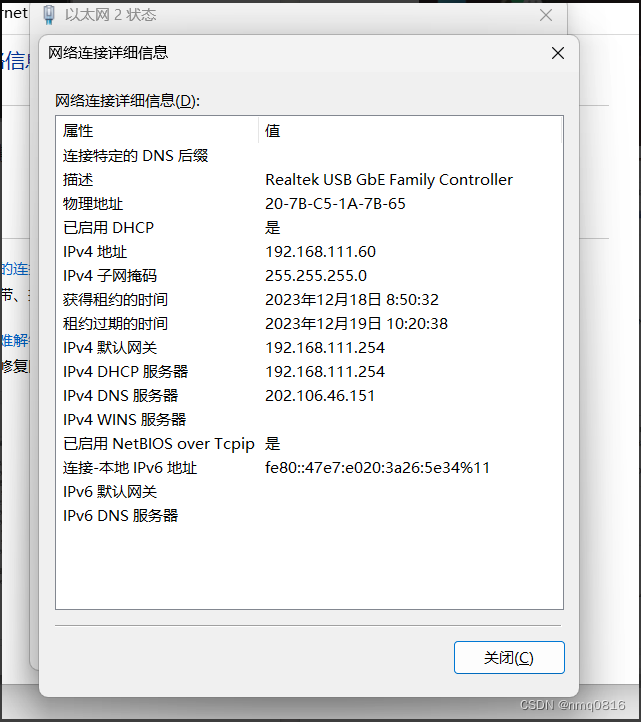 查看IP地址方法二:桌面网络、鼠标右键找到属性然后找到以太网2、查看详细信息