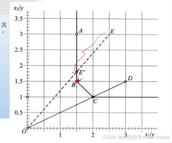 径向改进:投入同比例减少,例如EE'; 松弛改进:投入不同比例减少,例如E'B |