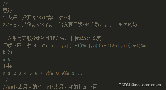 t=a[i]+a[(i+1)%n]+a[(i+2)%n]+a[(i+3)%n];
