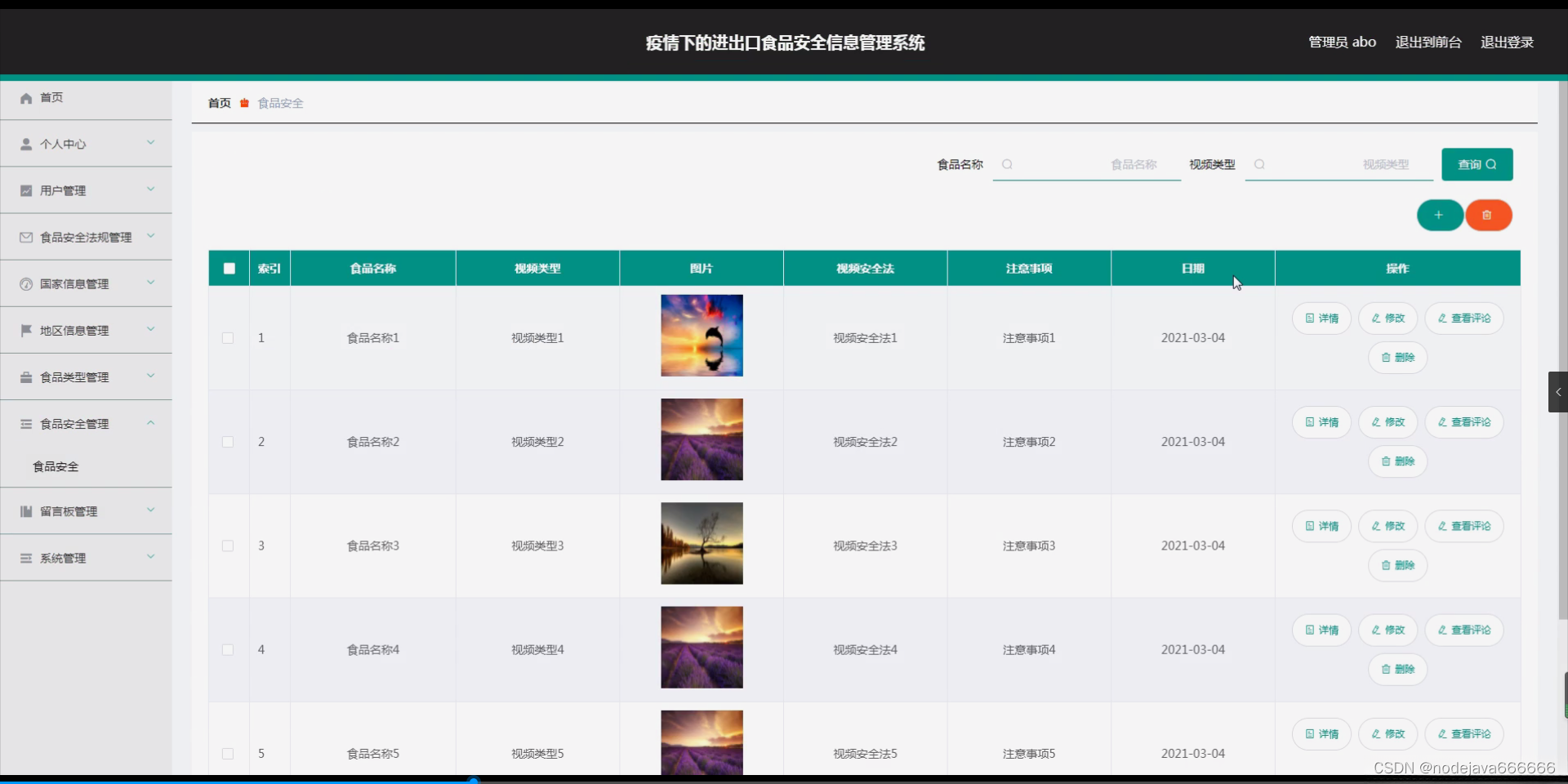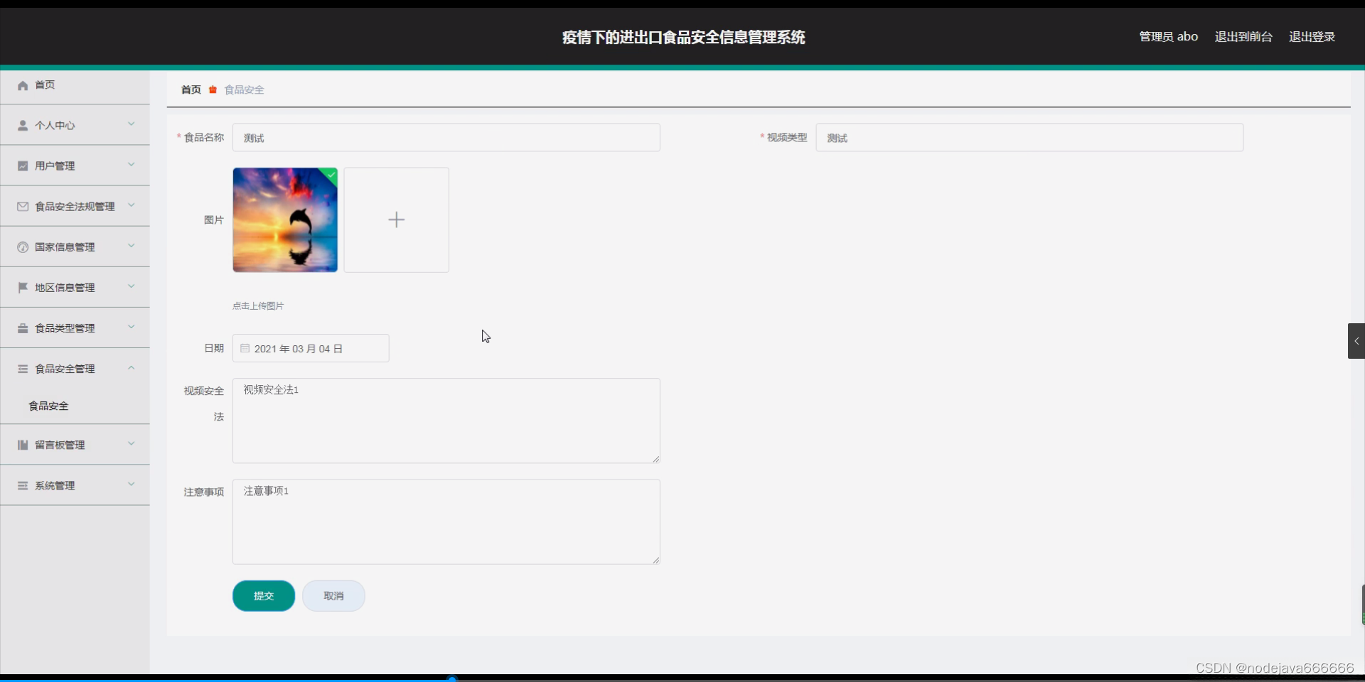 【附源码】计算机毕业设计JAVA疫情下的进出口食品安全信息管理系统