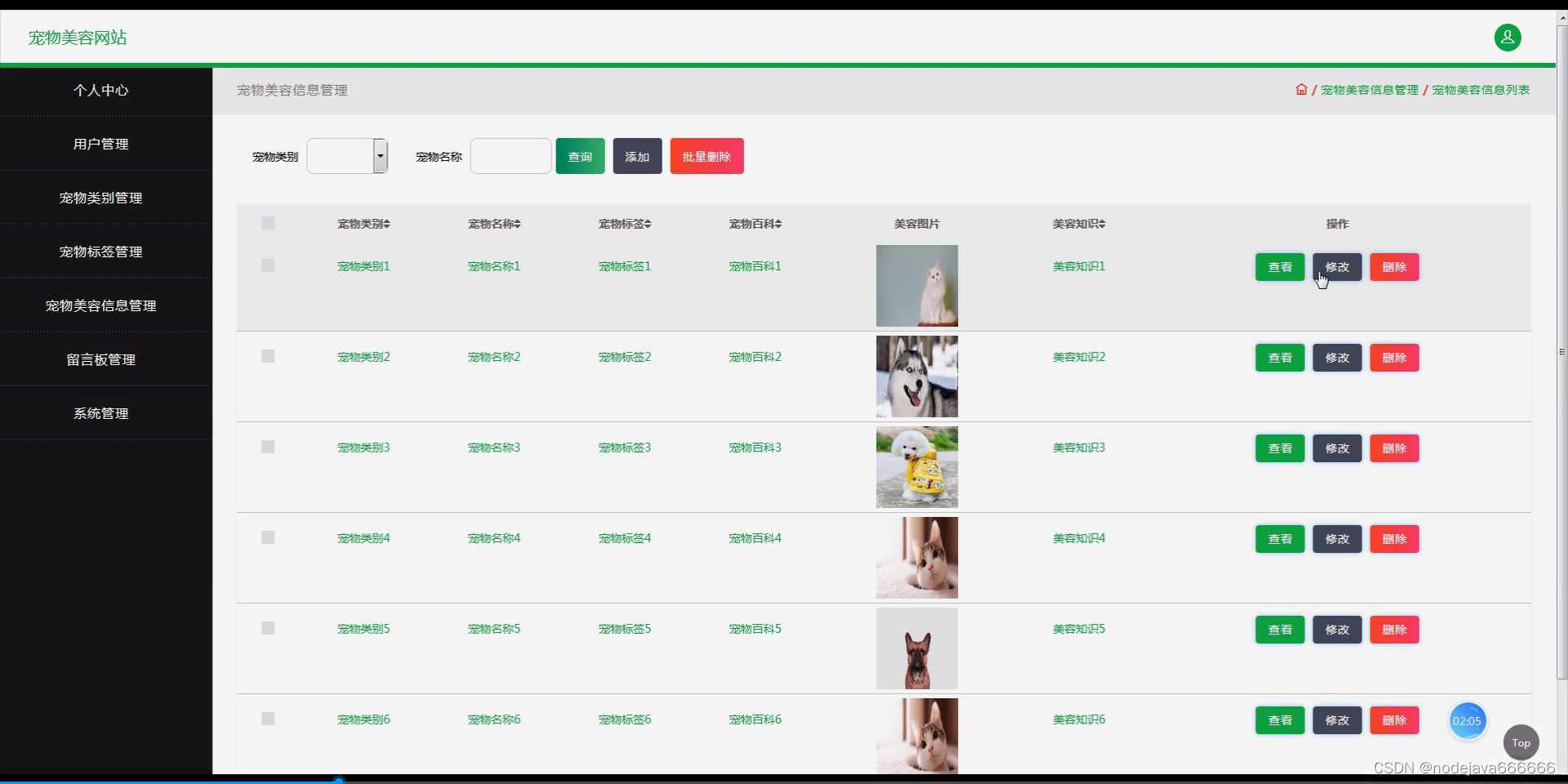 【附源码】计算机毕业设计JAVA宠物美容网站