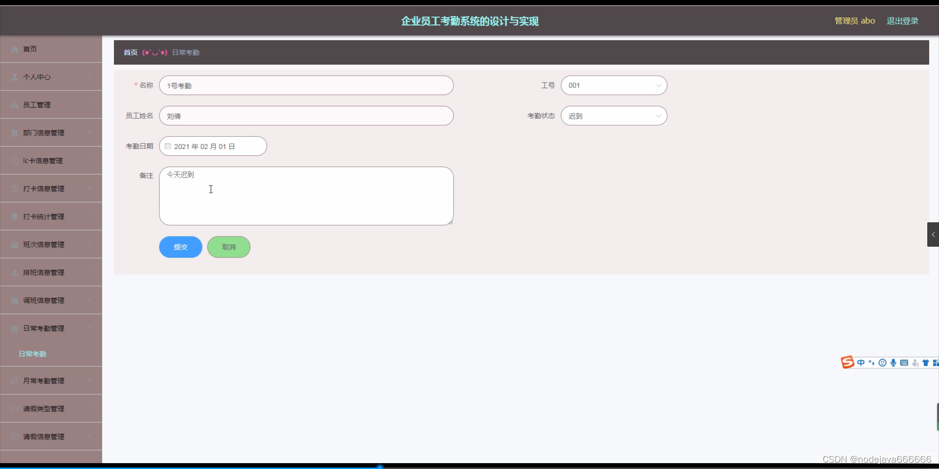 JAVA计算机毕业设计企业员工考勤系统的设计与实现(附源码、数据库)