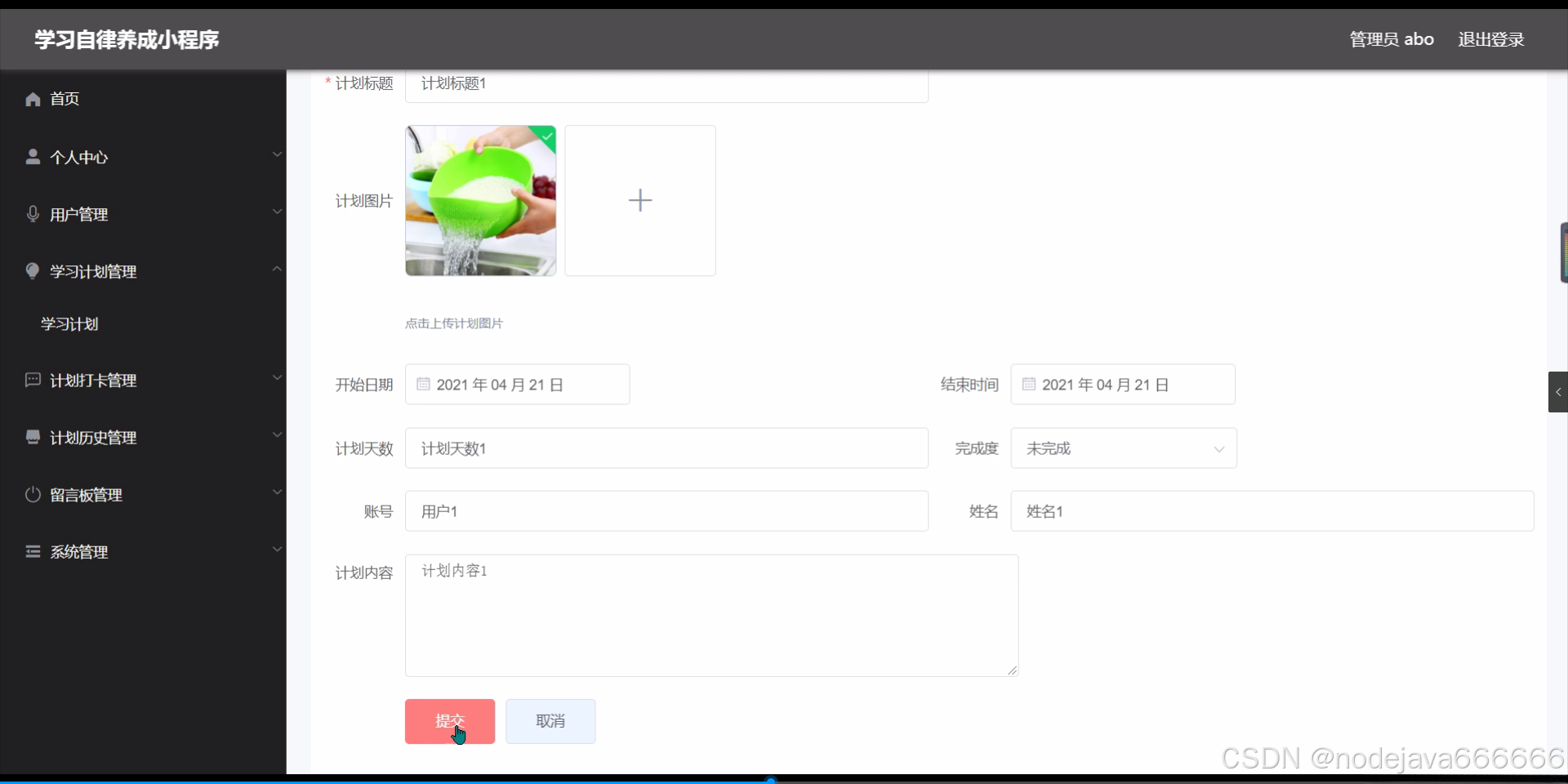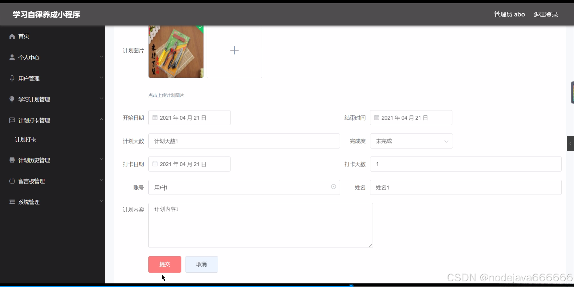 【附源码】计算机毕业设计JAVA学习自律养成小程序后台