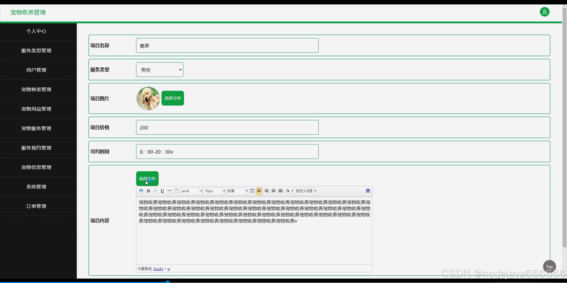 【附源码】计算机毕业设计JAVA宠物收养管理