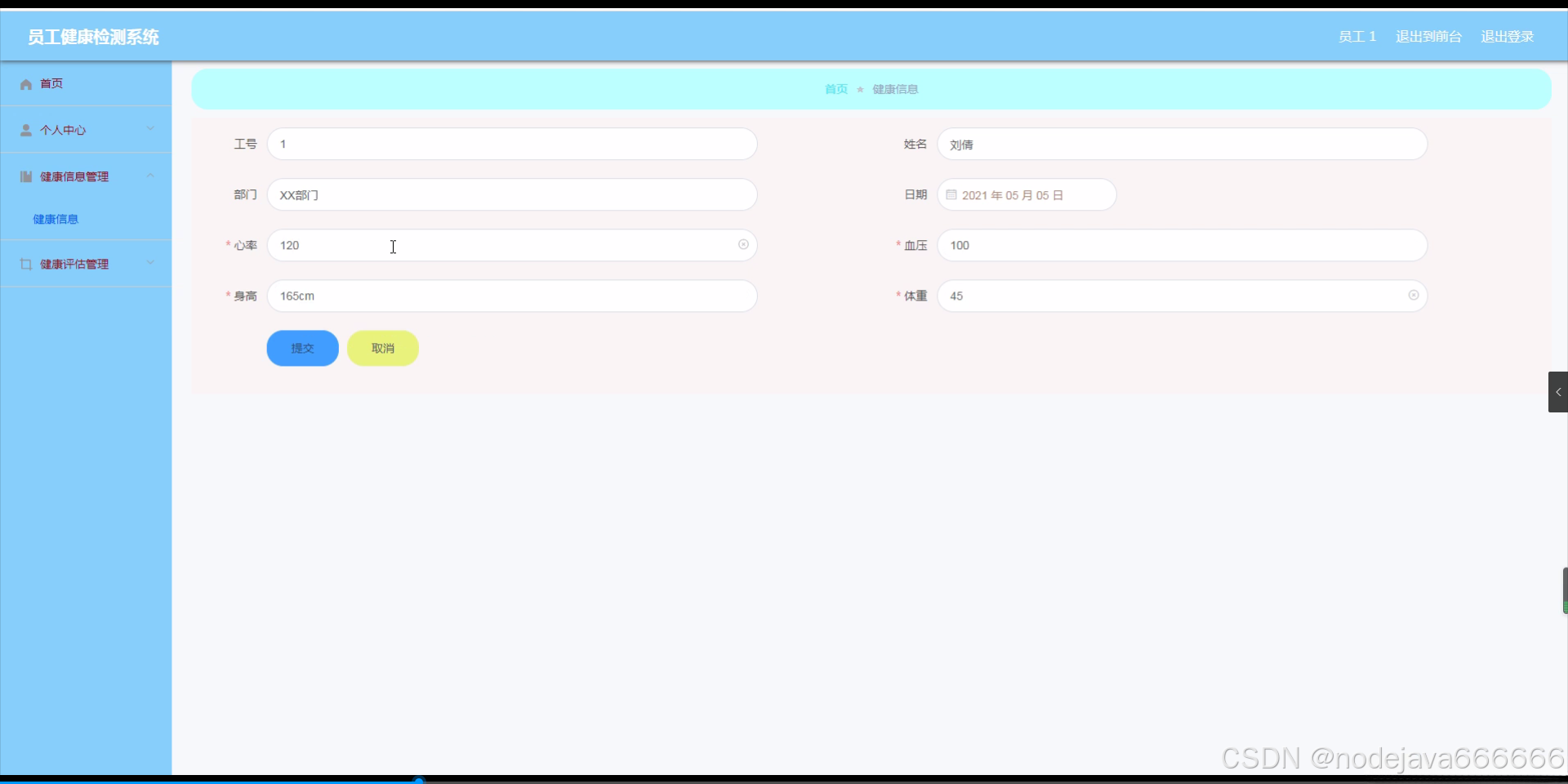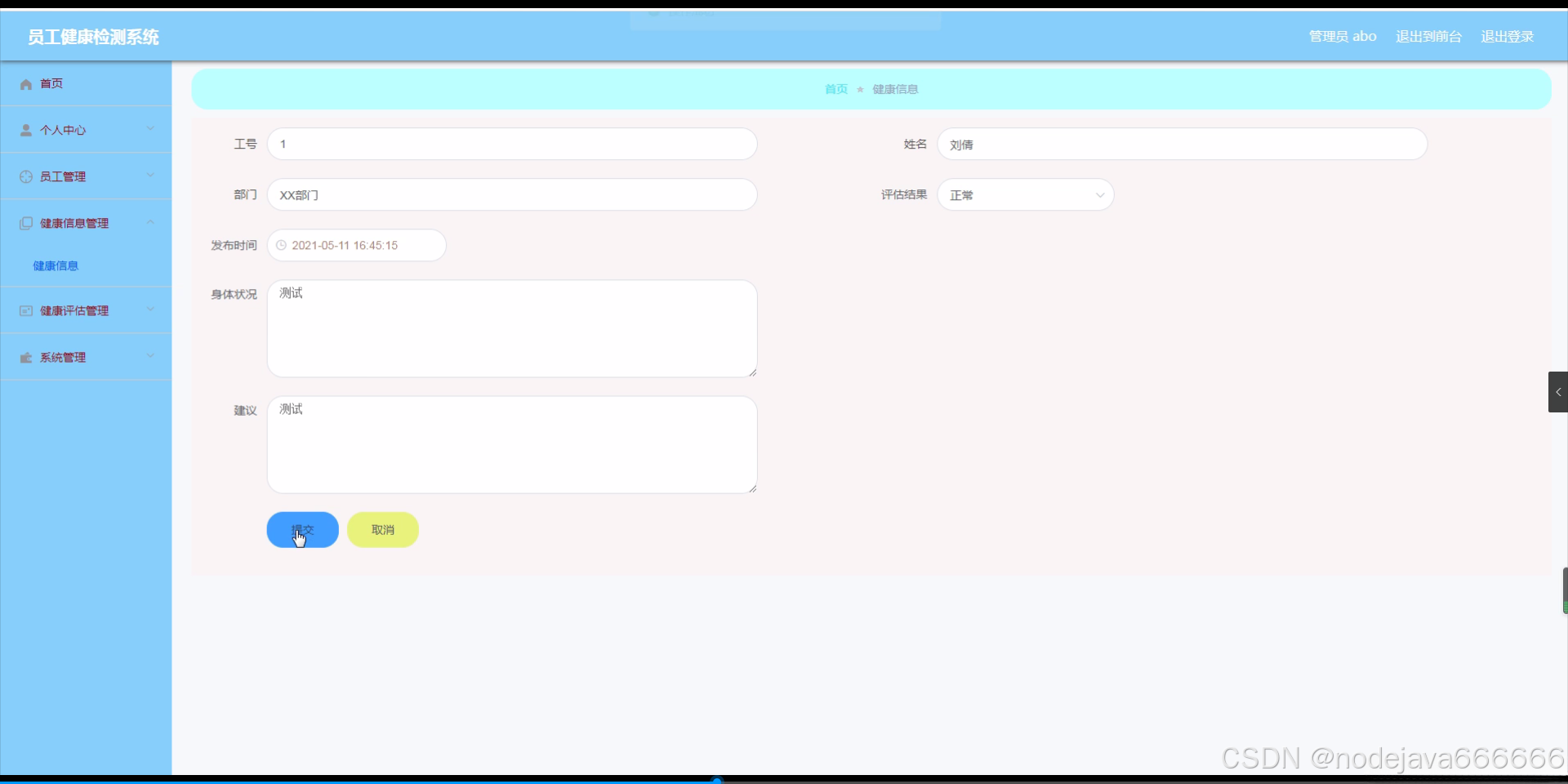 【附源码】计算机毕业设计JAVA员工健康检测系统