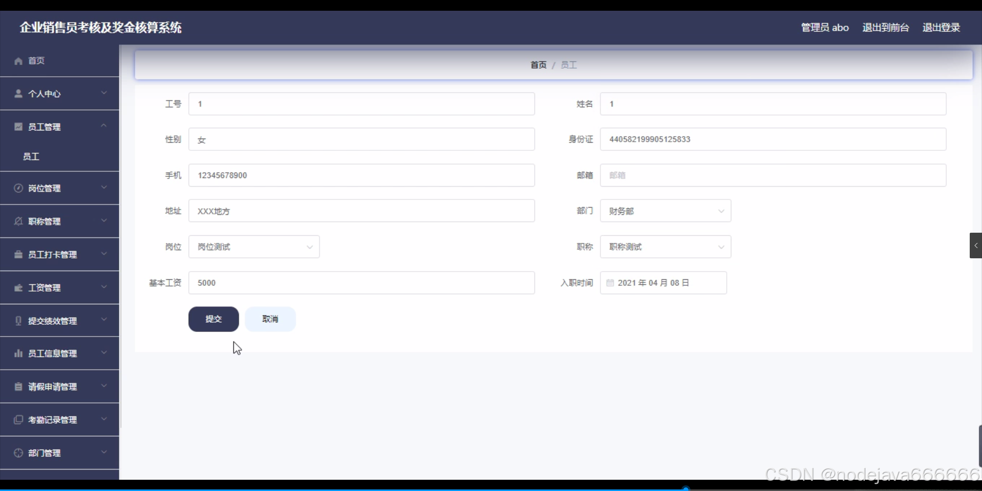 JAVA计算机毕业设计企业销售员考核及奖金核算系统(附源码、数据库)