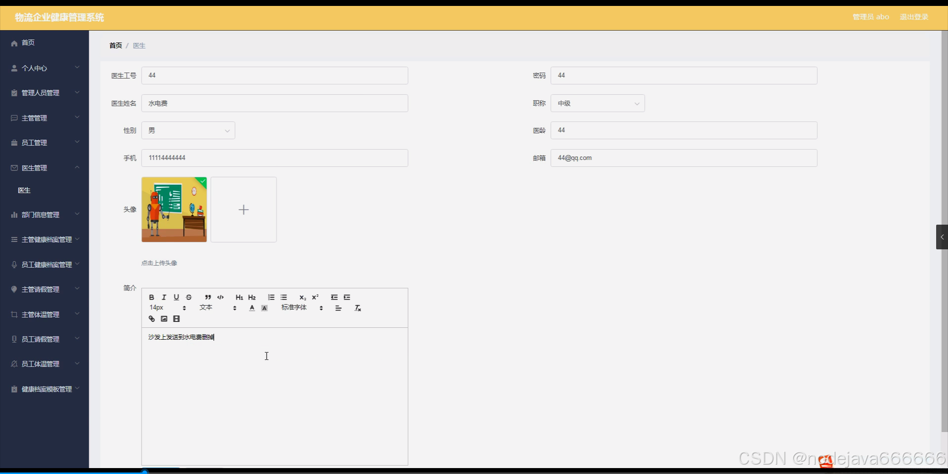 JAVA计算机毕业设计物流企业健康管理系统(附源码、数据库)