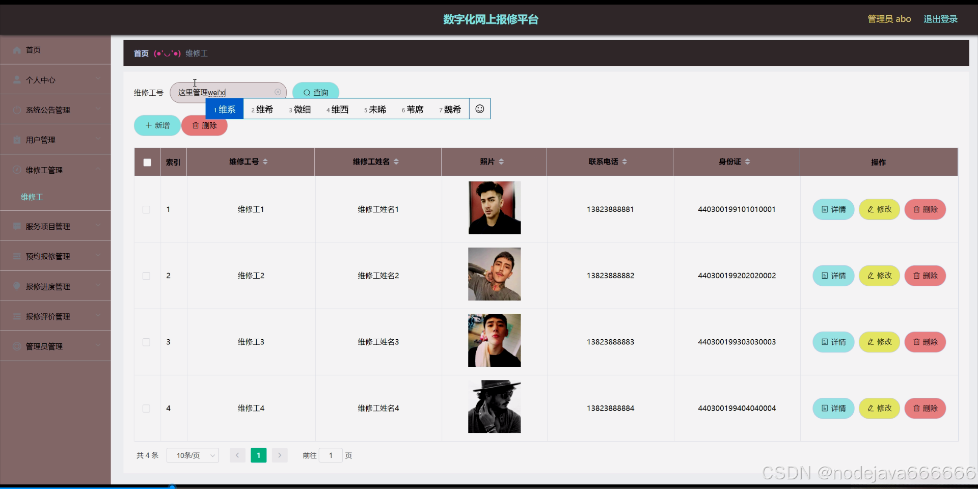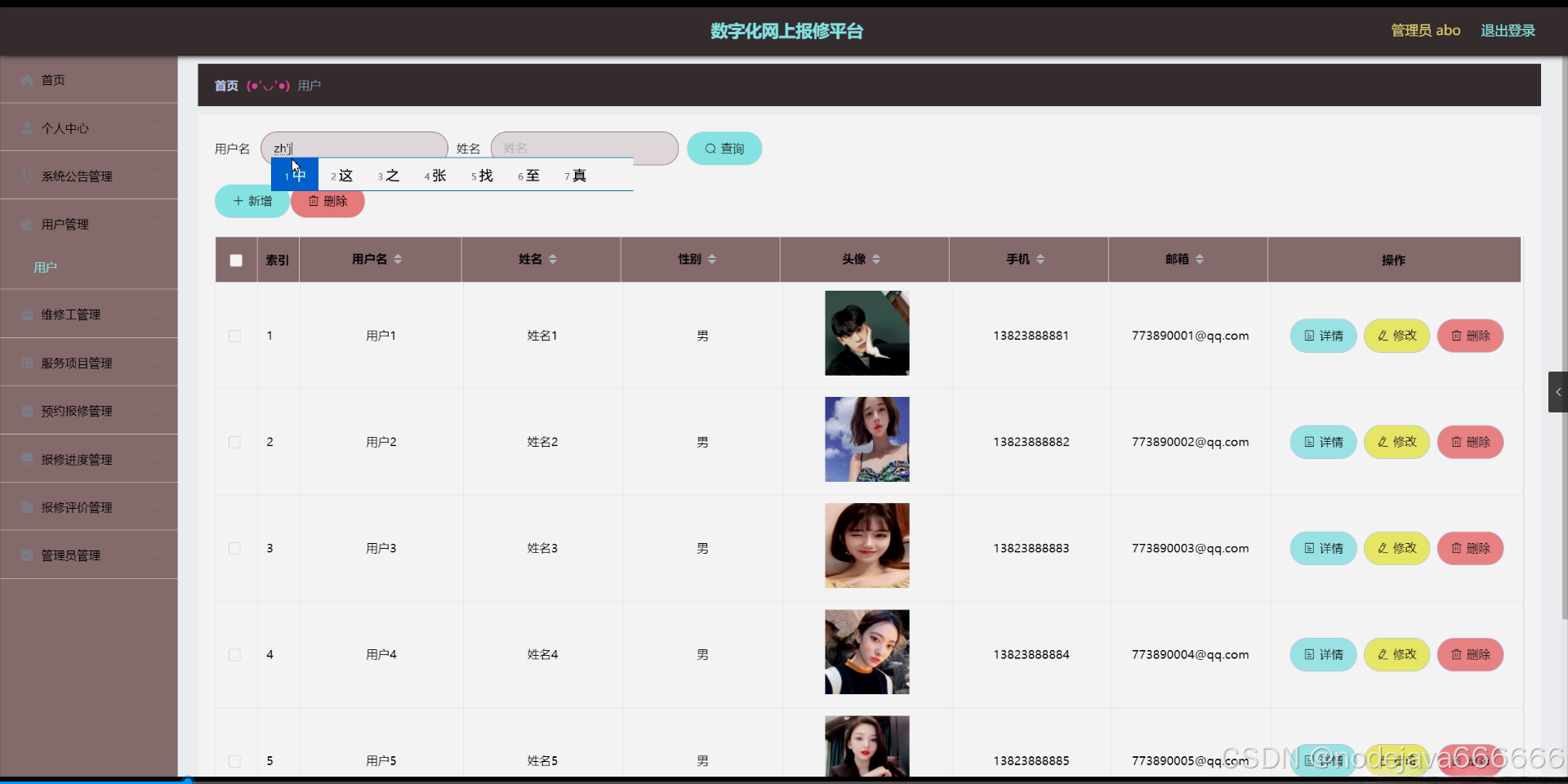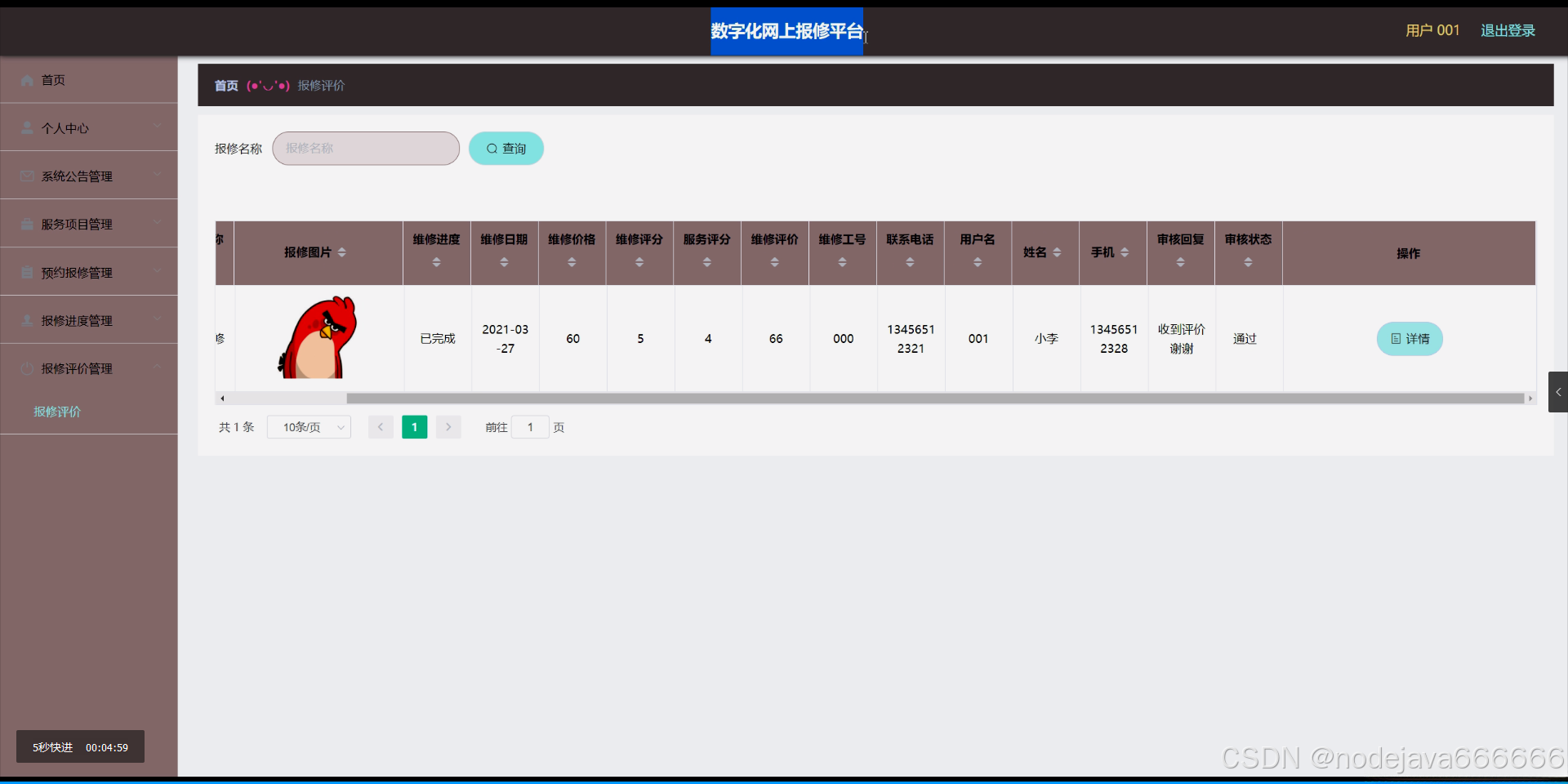 JAVA计算机毕业设计数字化网上报修平台(附源码、数据库)