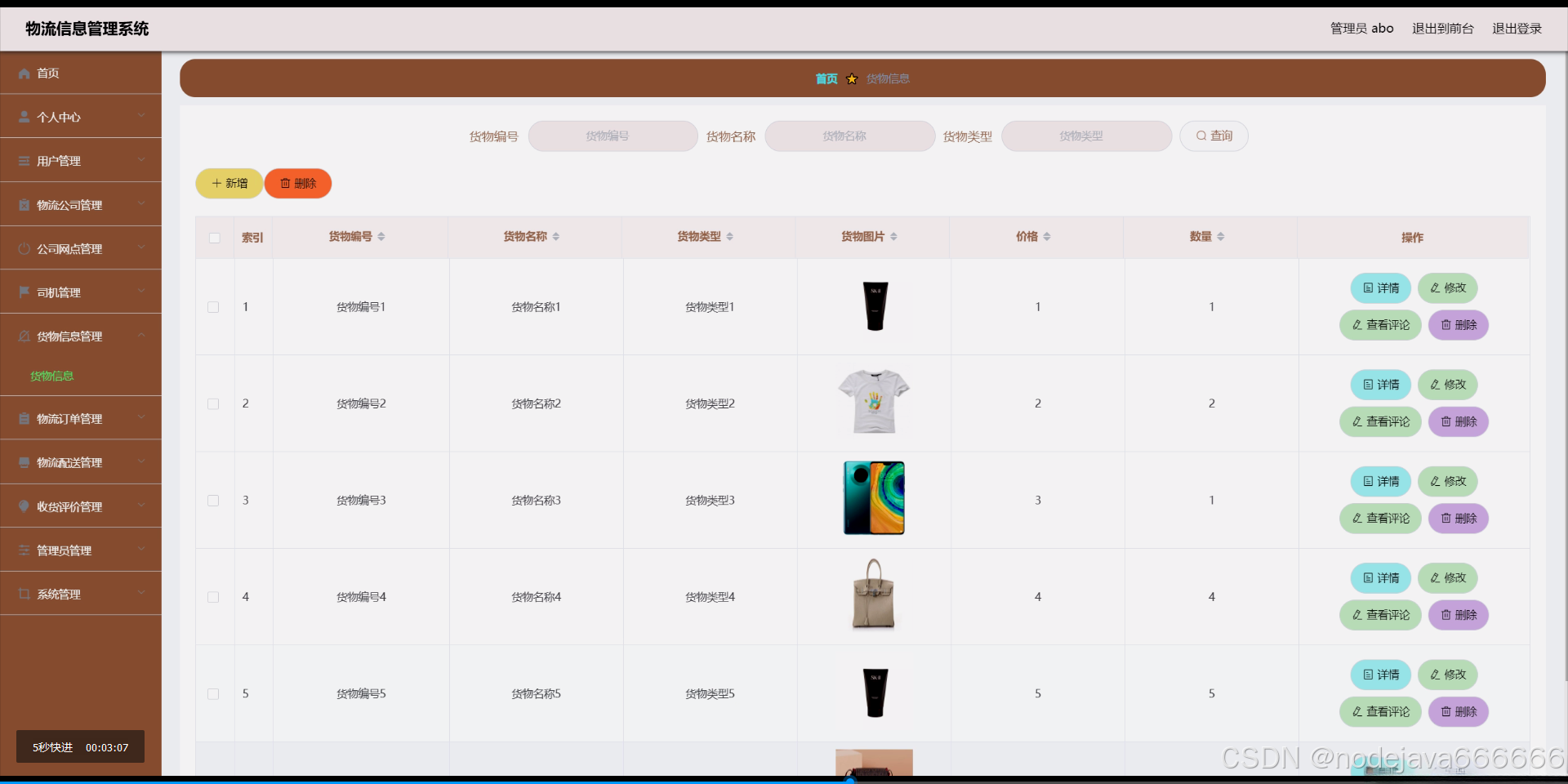 JAVA计算机毕业设计物流信息管理系统-(附源码、数据库)