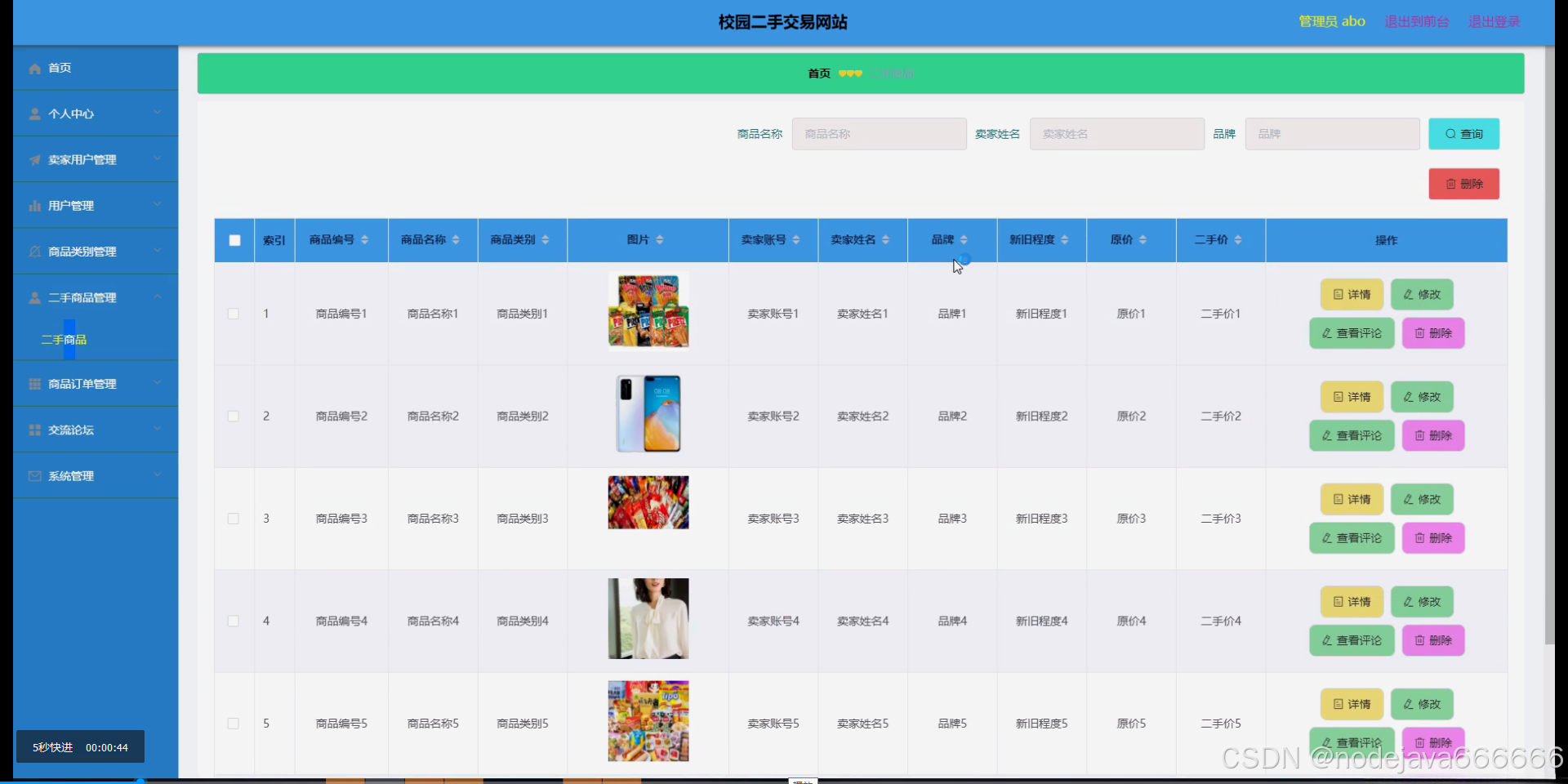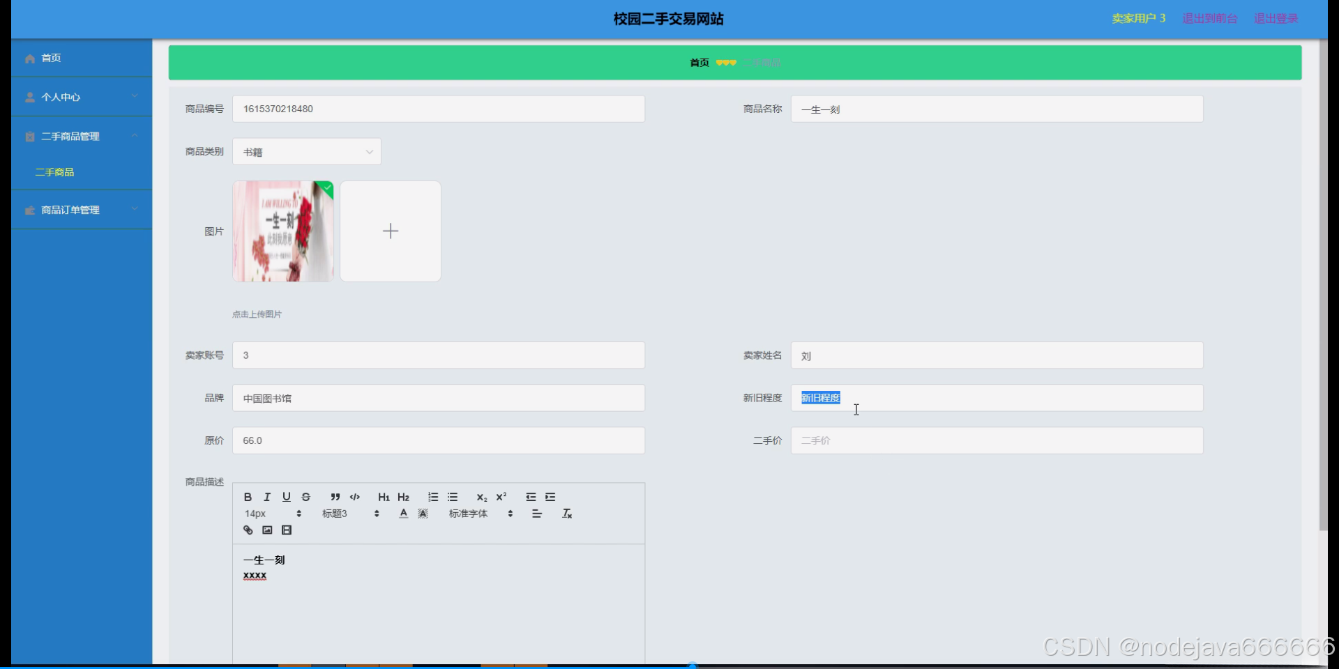JAVA计算机毕业设计校园二手交易网站(附源码、数据库)