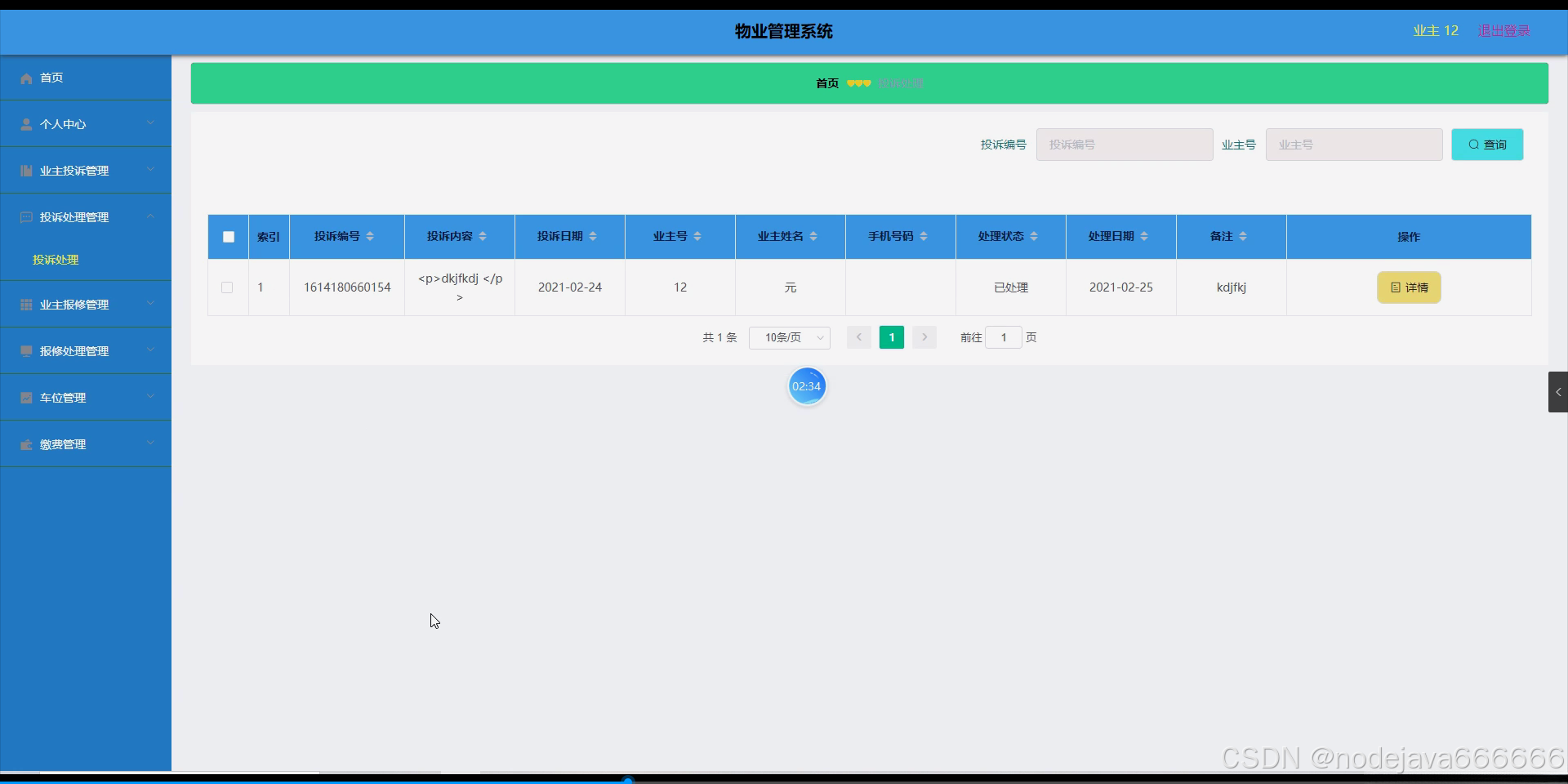 JAVA计算机毕业设计物业管理系统(附源码、数据库)