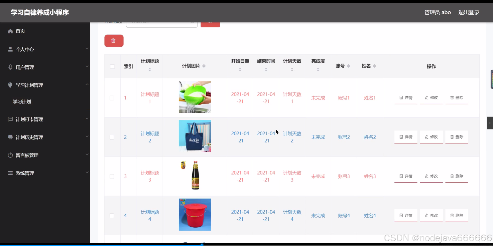 【附源码】计算机毕业设计JAVA学习自律养成小程序后台