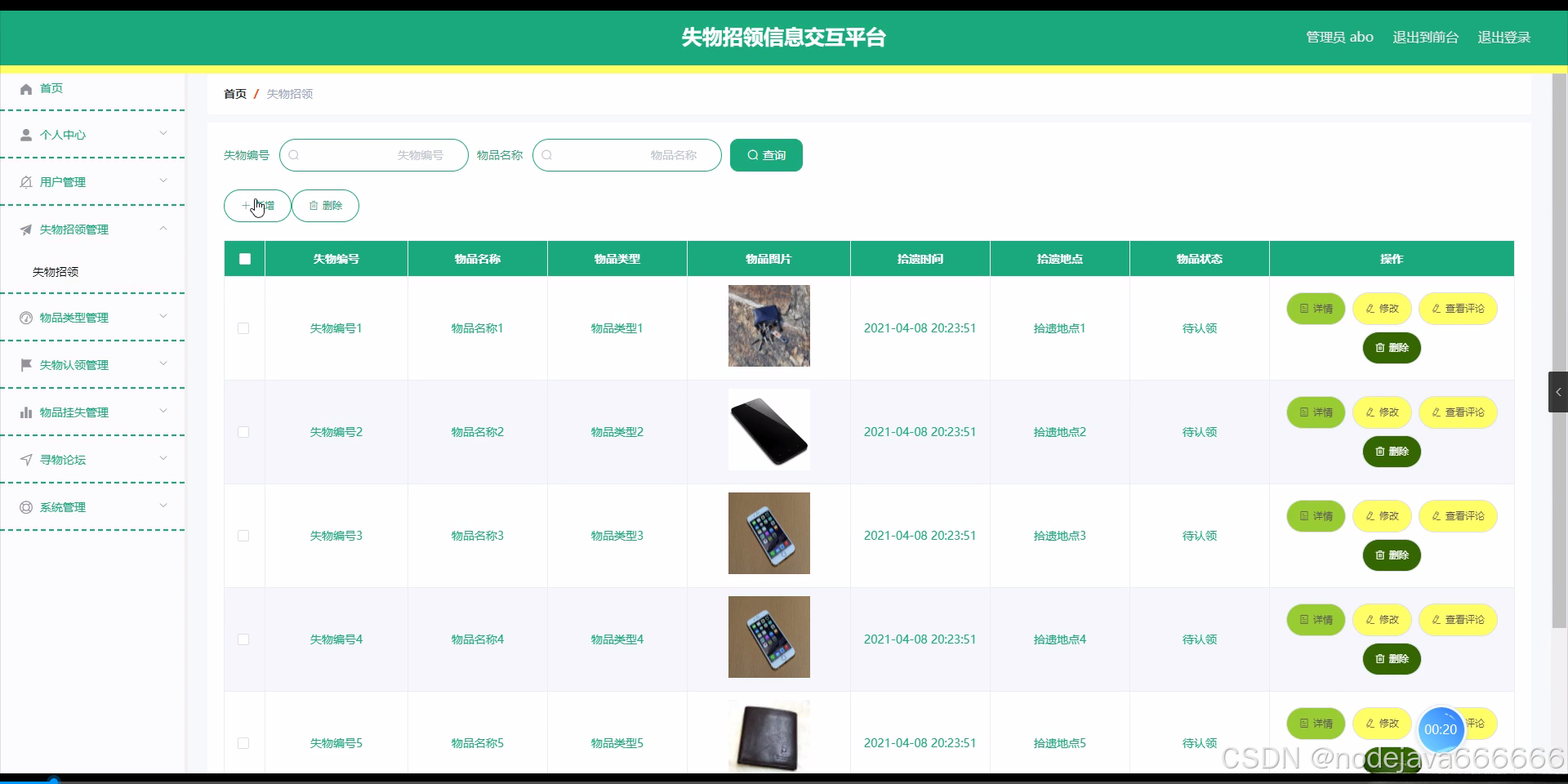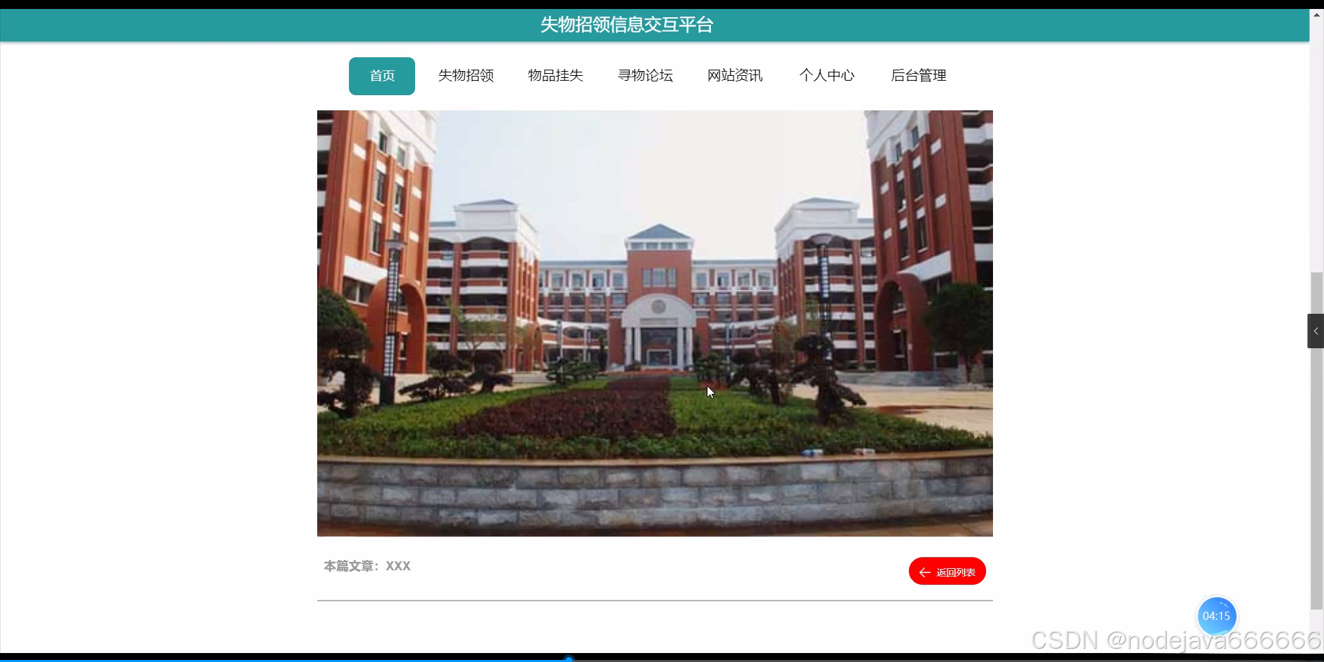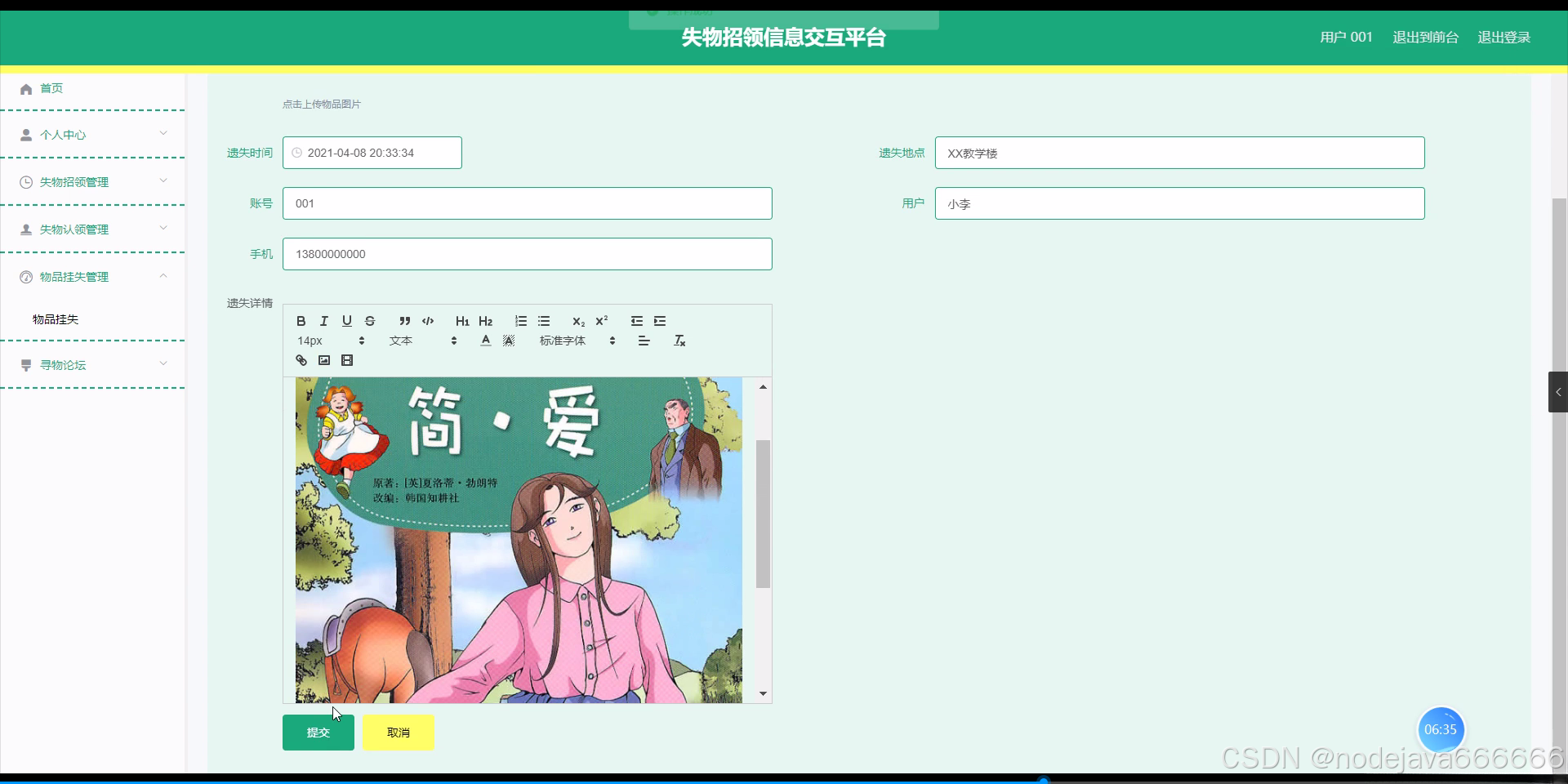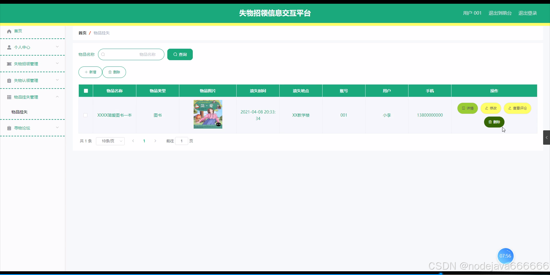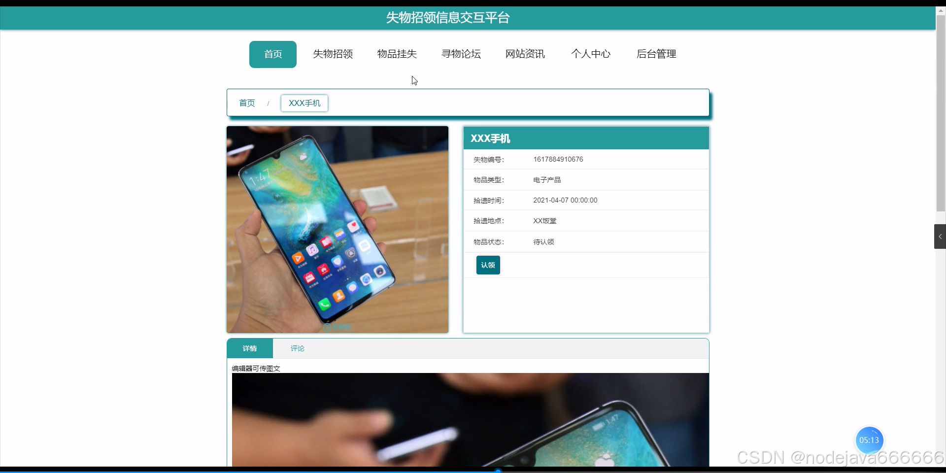 JAVA计算机毕业设计失物招领信息交互平台(附源码、数据库)