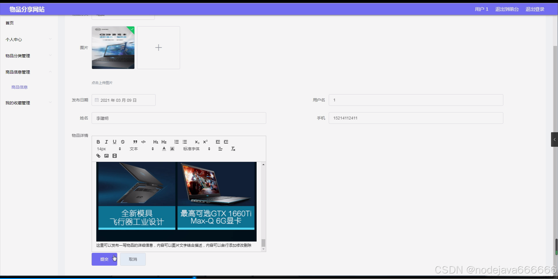 JAVA计算机毕业设计物品分享网站(附源码、数据库)