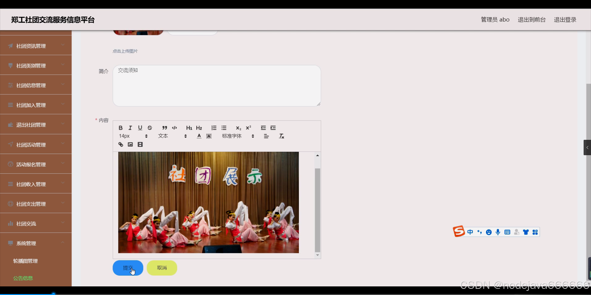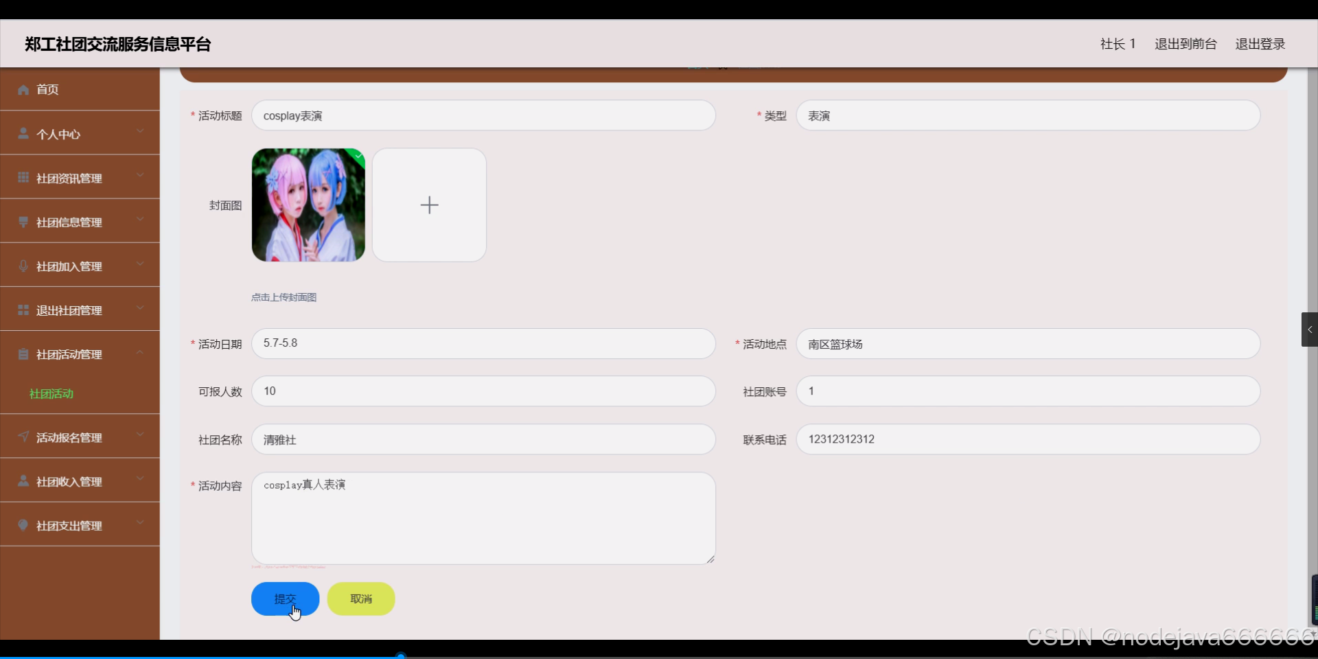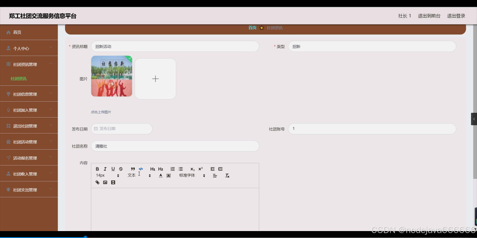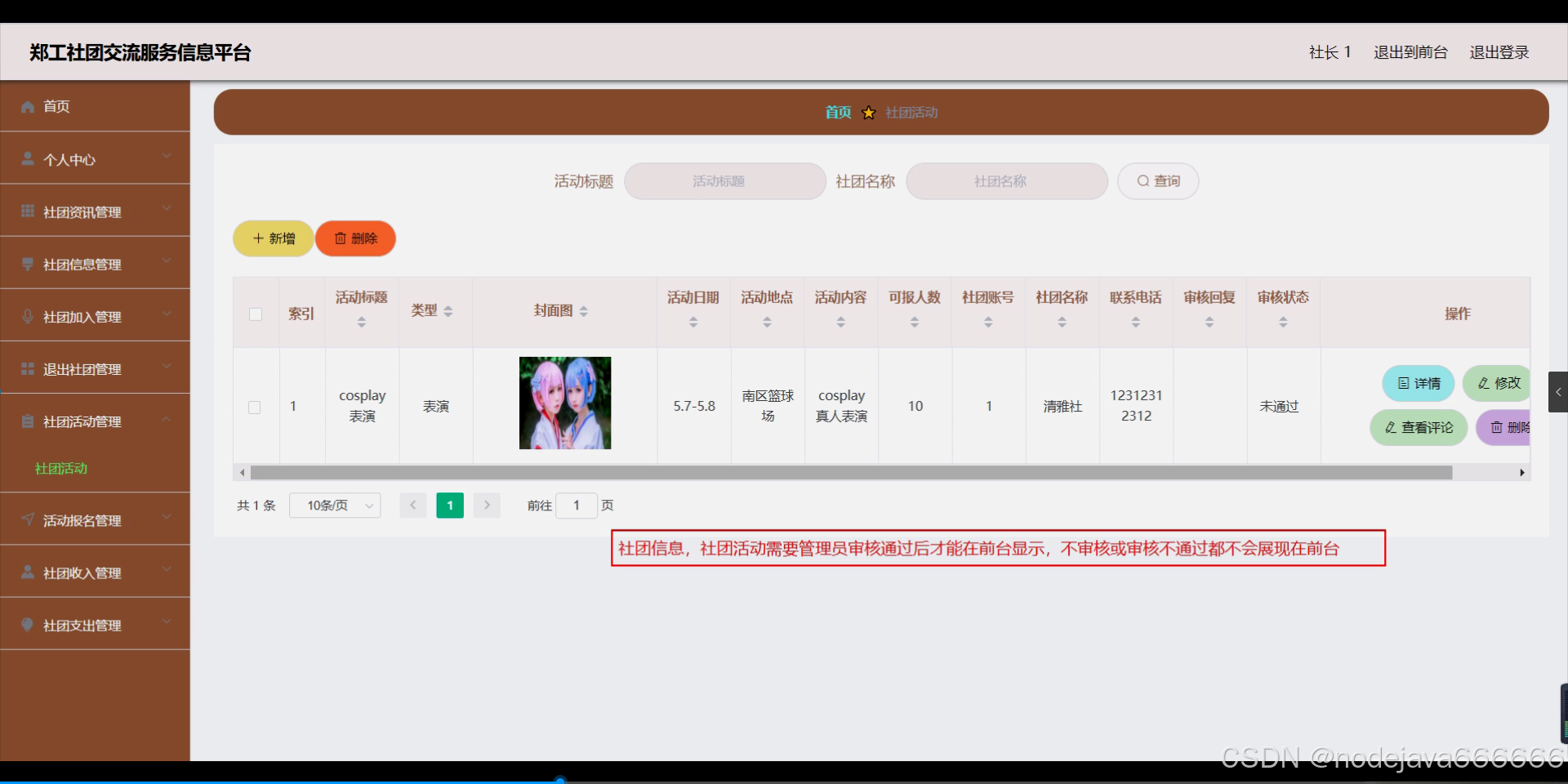 【附源码】计算机毕业设计JAVA郑工社团交流服务信息平台