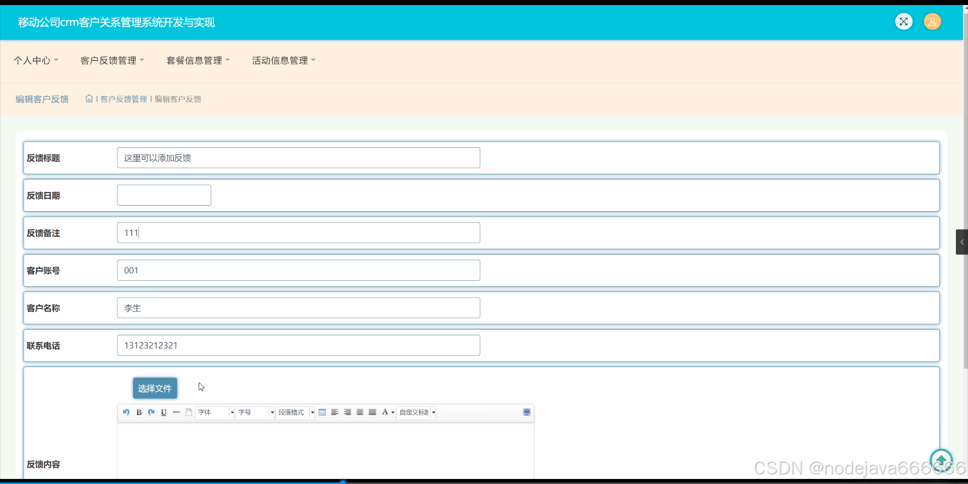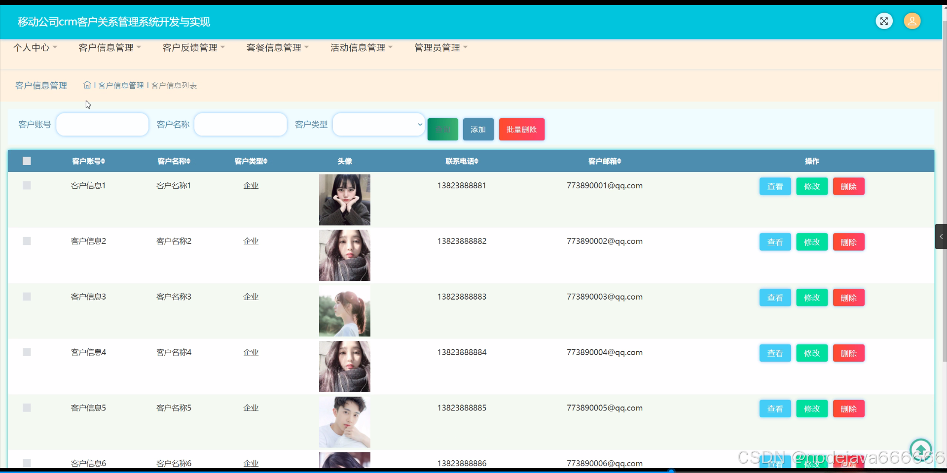 [附源码]JAVA毕业设计-移动公司crm客户关系管理系统开发与实现-(系统+LW)