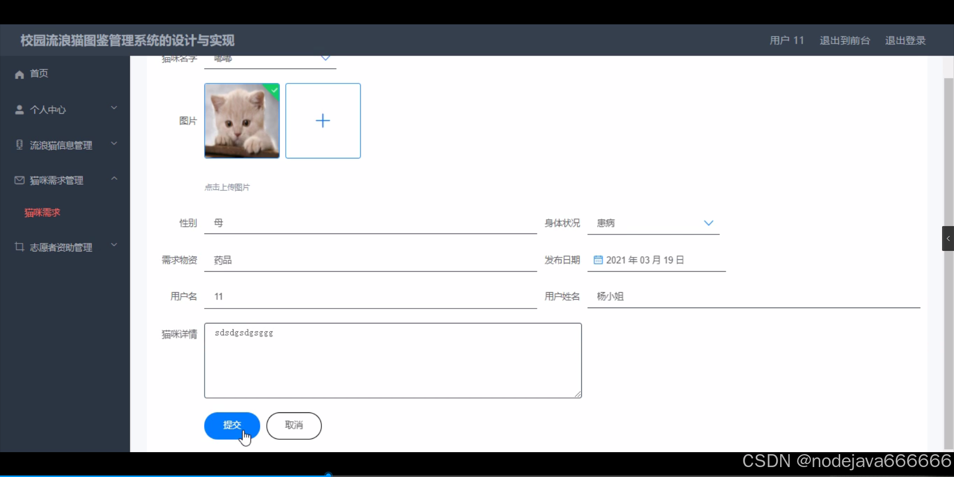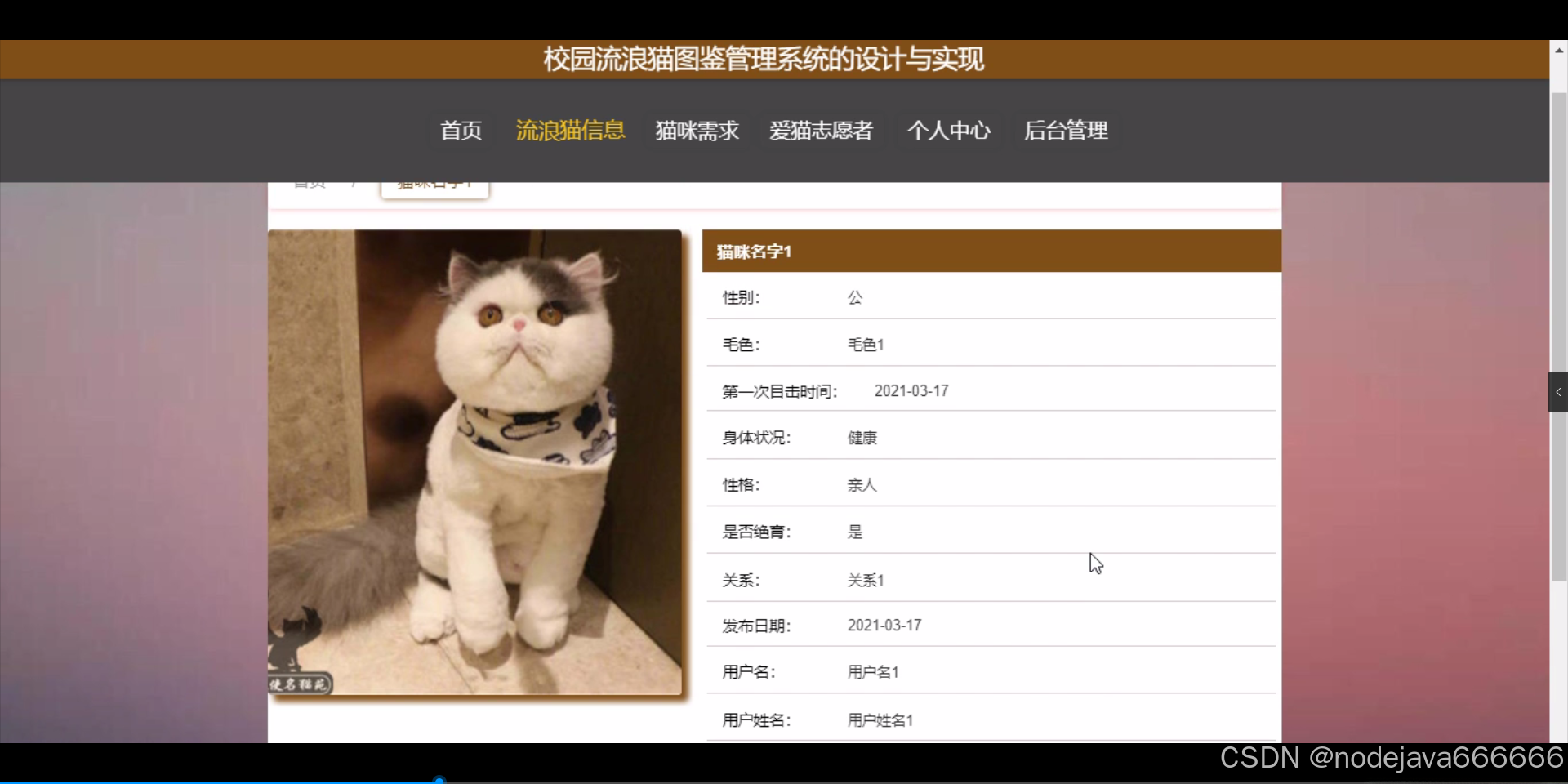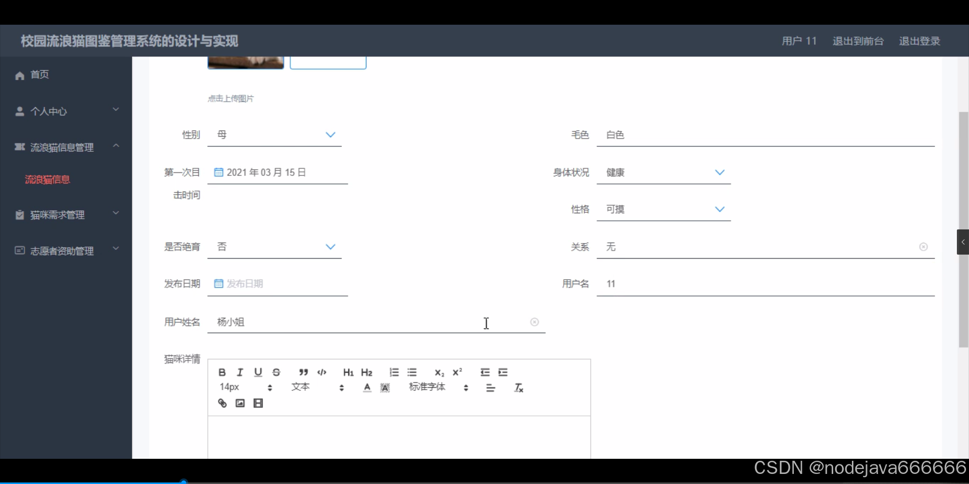 【附源码】计算机毕业设计JAVA校园流浪猫图鉴管理系统的设计与实现