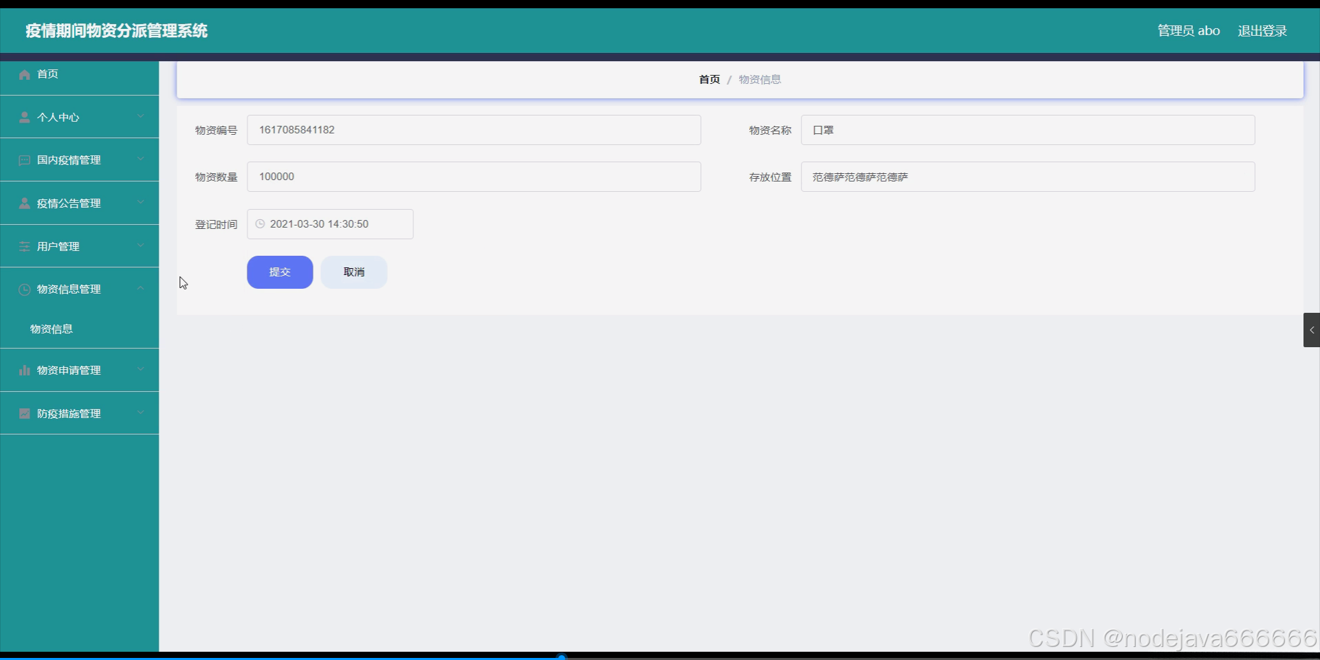 【附源码】计算机毕业设计JAVA疫情期间物资分派管理系统