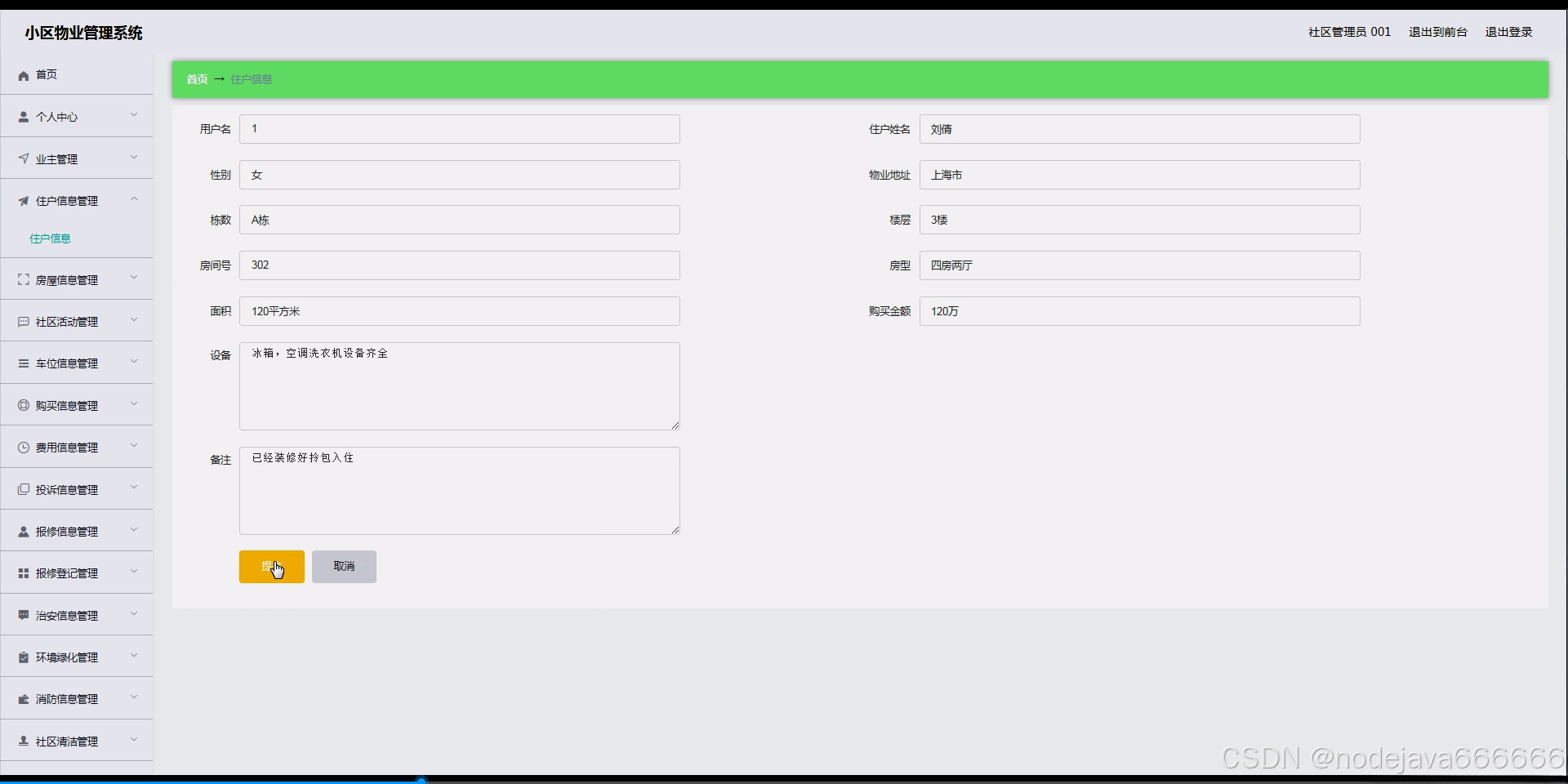 JAVA计算机毕业设计小区物业管理系统(附源码、数据库)