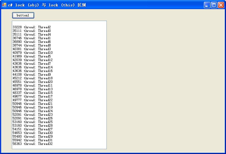 大家看到每个线程执行的结果都是相同的。下面来看lock(this)