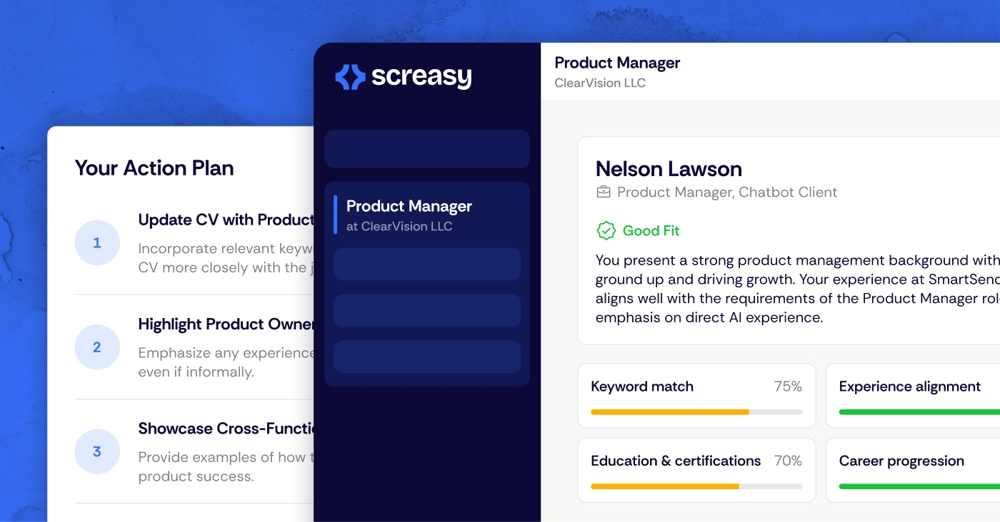 Screasy是一款求职助手平台,帮助求职者定制简历、识别差距并提供优化建议,未来将扩展至求职信撰写和面试模拟等功能。