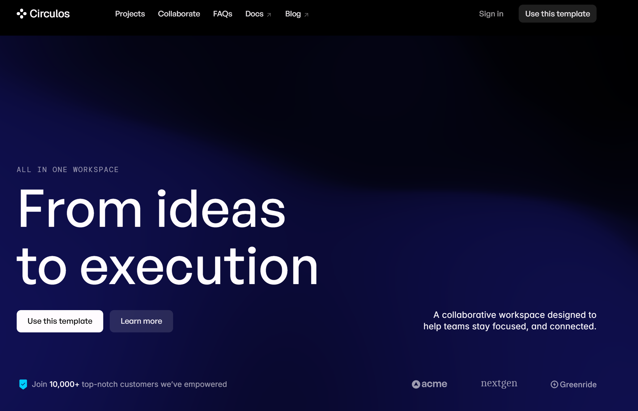 Circulos是一款免费的Framer模板,简洁的落地页设计,特别适合早期产品和SaaS工具,使用方便,无需付费或邮箱注册。