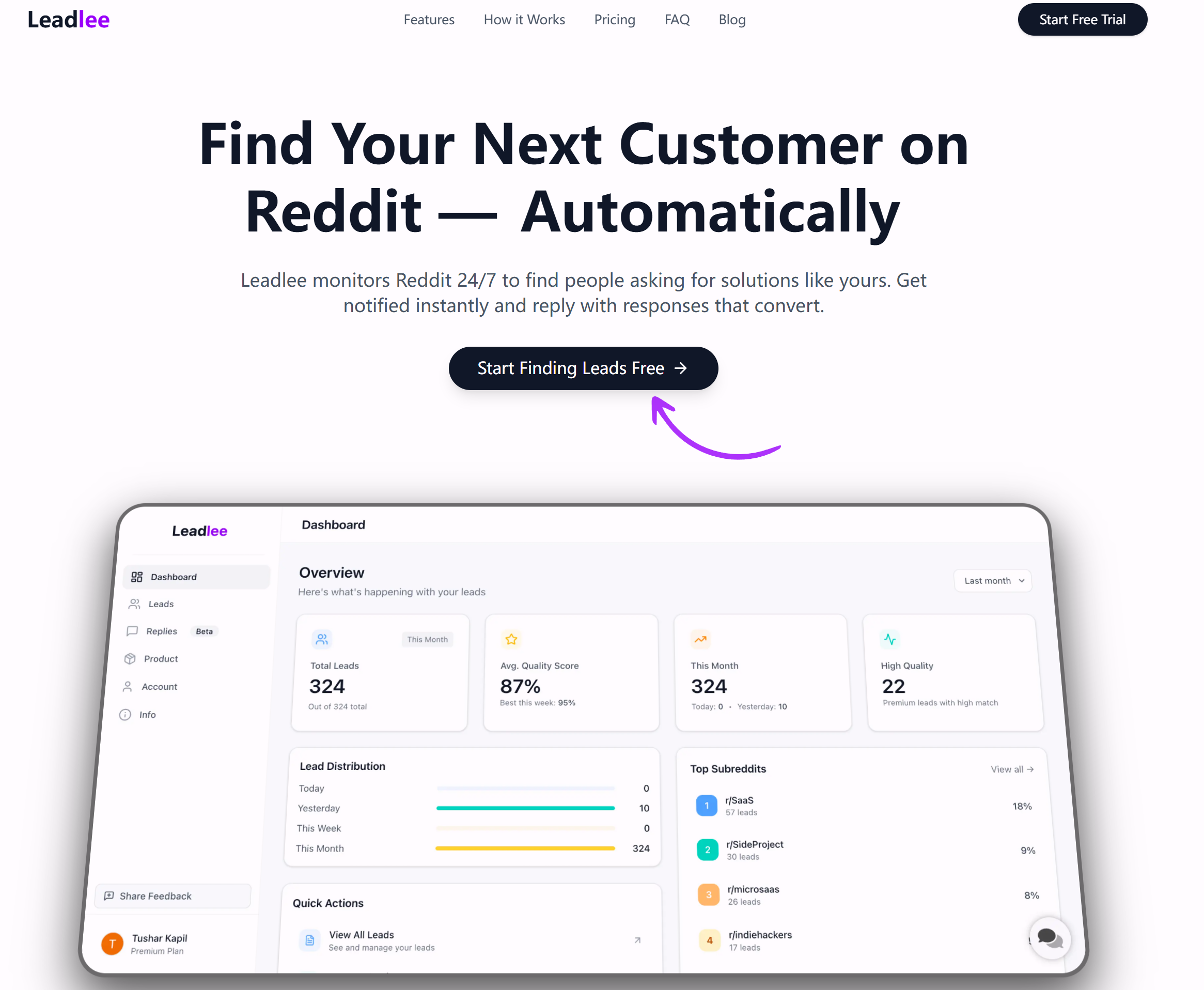 Leadlee是一款帮助开发者寻找潜在客户的工具,监控1300多个相关的subreddit,自动回复帖子并与用户互动。