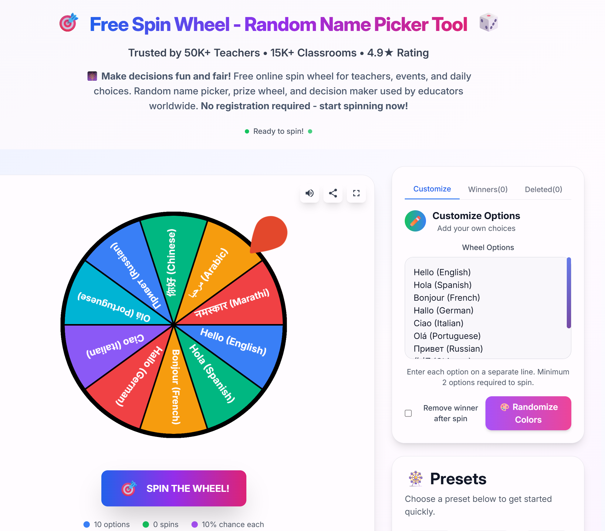 EngageWheel是一款免费的抽奖转盘应用,无需登录、拥有40+预设模板、支持音效和特效,适用于决策和赠品,且可嵌入到其他网站。