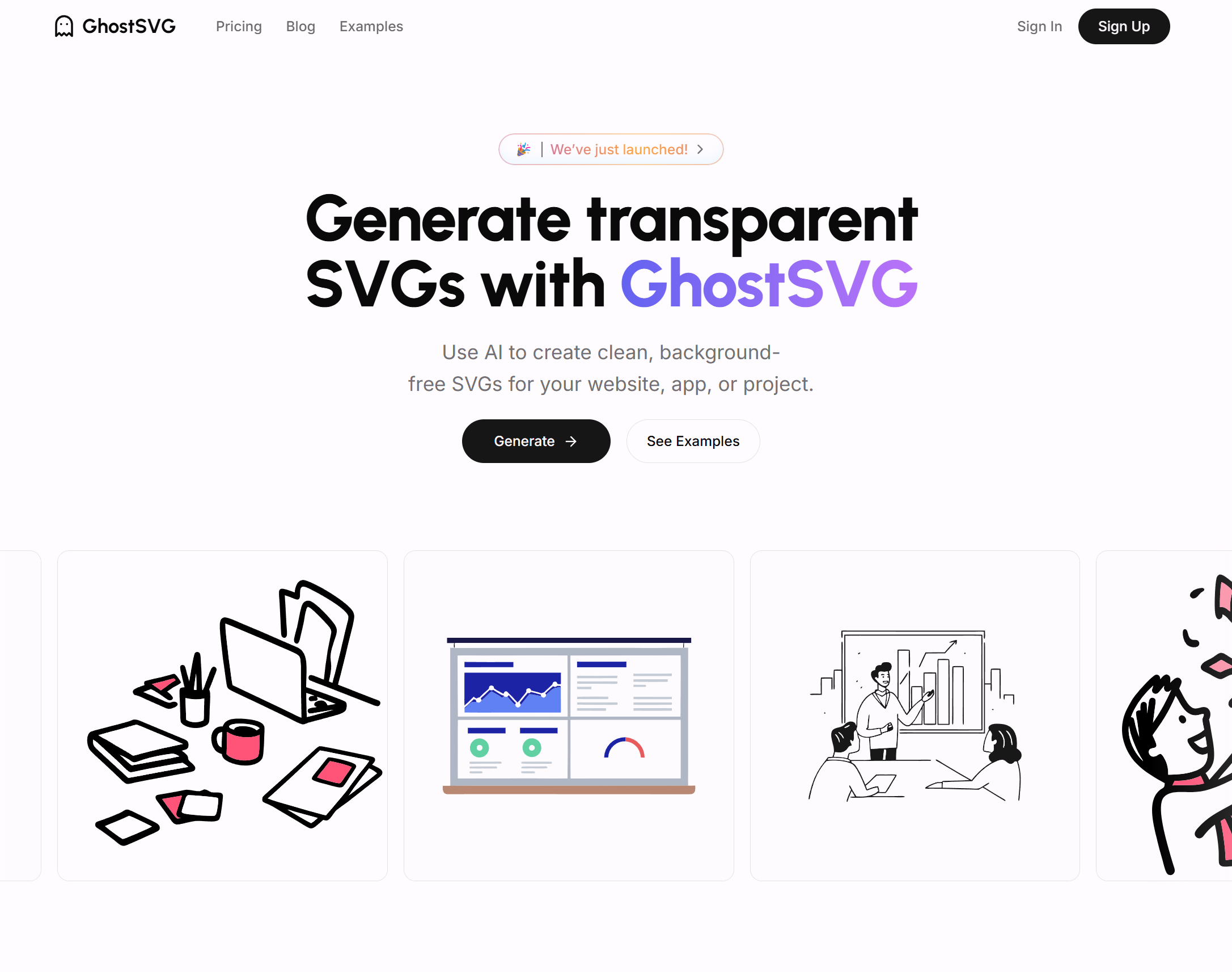 GhostSVG是一款图像生成工具,可以将文本提示快速转化为SVG插图,支持多种格式导出,适合独立开发者用于快速制作网站和文档配图。