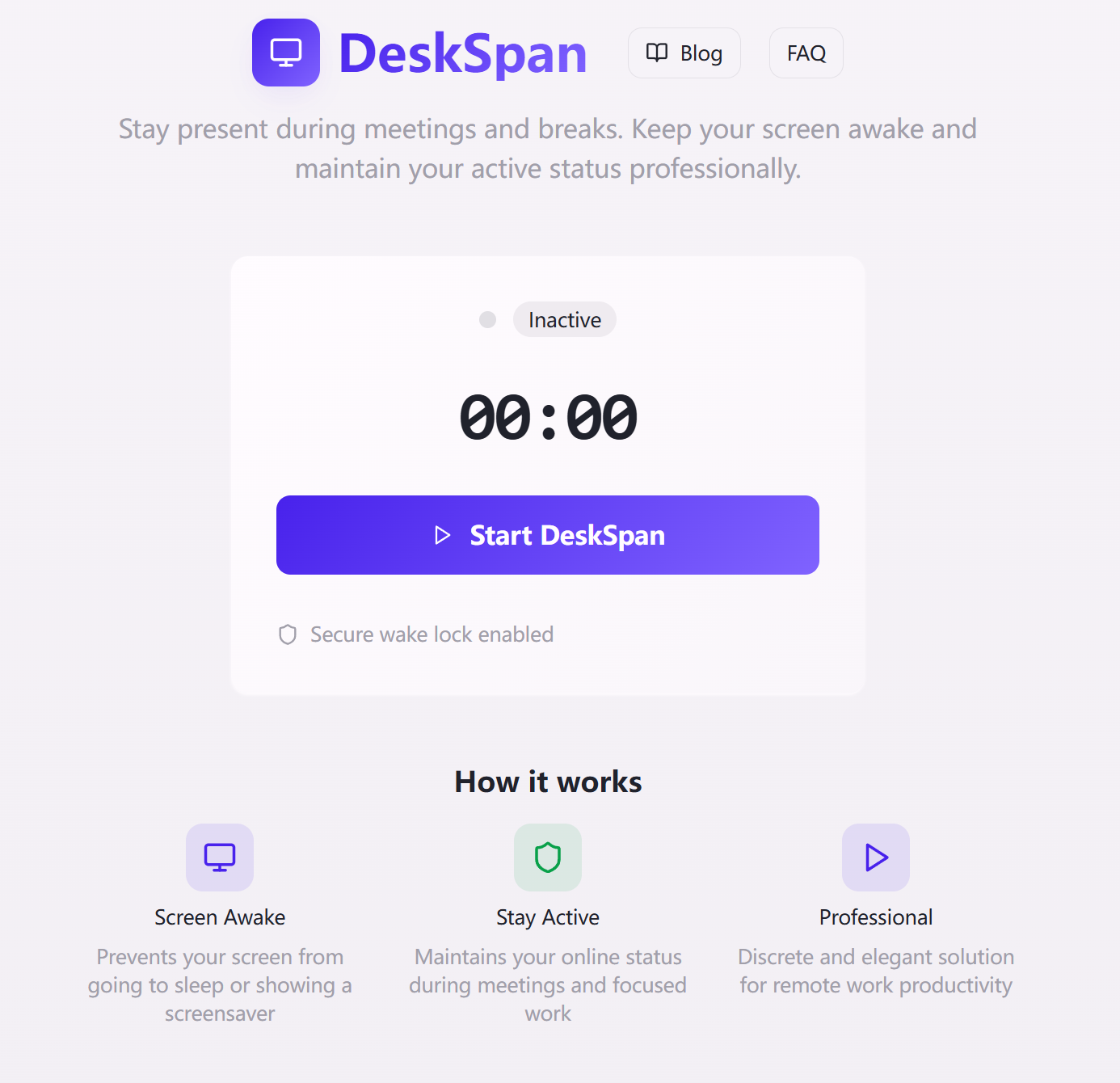 DeskSpan是一款基于浏览器的免费工具,利用Wake Lock API防止屏幕休眠,适合远程会议、在线课程等场景。