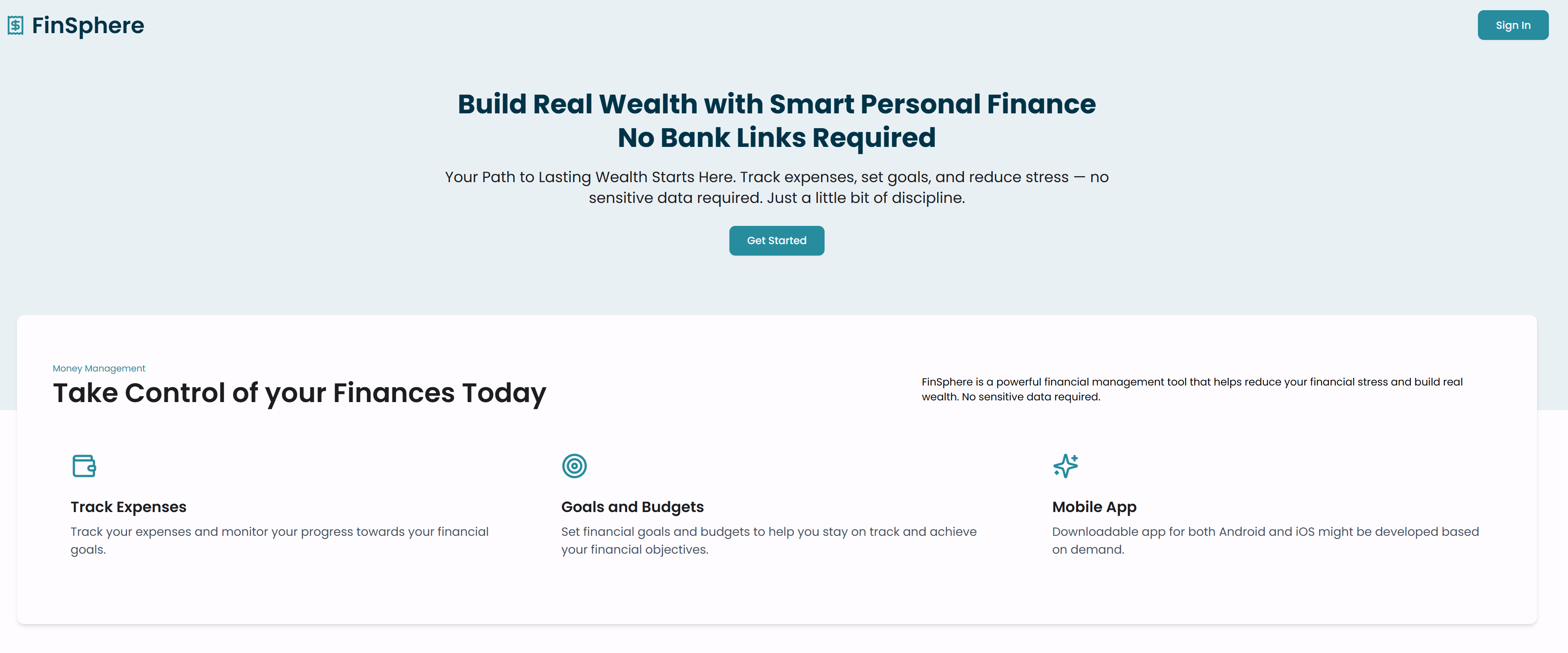 FinSphere是一款个人财务管理应用,使用MERN栈构建,用户可以添加、追踪和设置财务目标与预算,完全免费,无需银行信息,仅需Google账号即可使用。