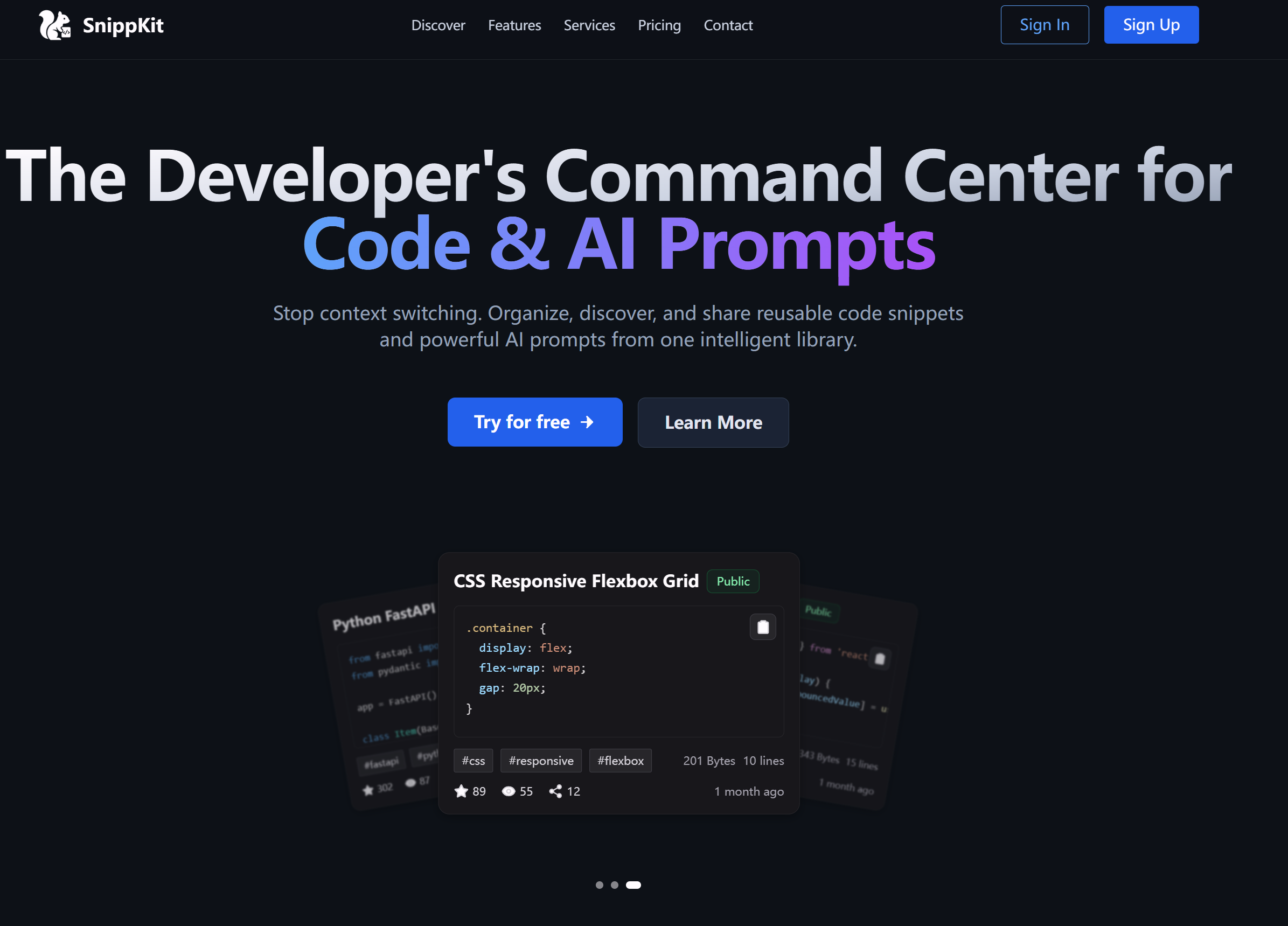 SnippKit是一款代码片段管理软件,集中保存、标签搜索、分享和按语言或主题组织代码片段,旨在简化代码管理。