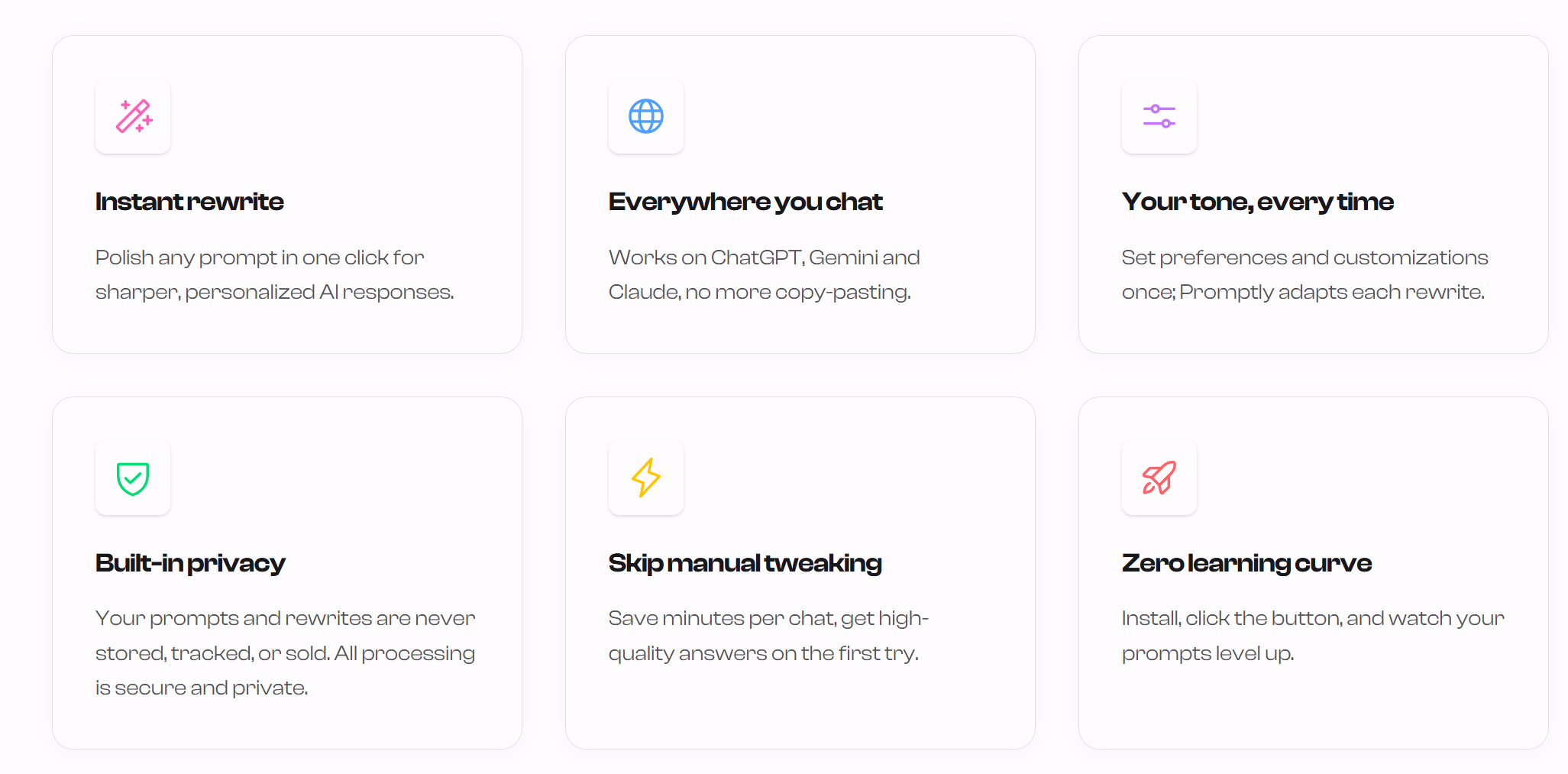 Promptly是一款一键 prompt 工程工具,可以帮助用户在 AI 网站上快速生成定制化的 prompts。