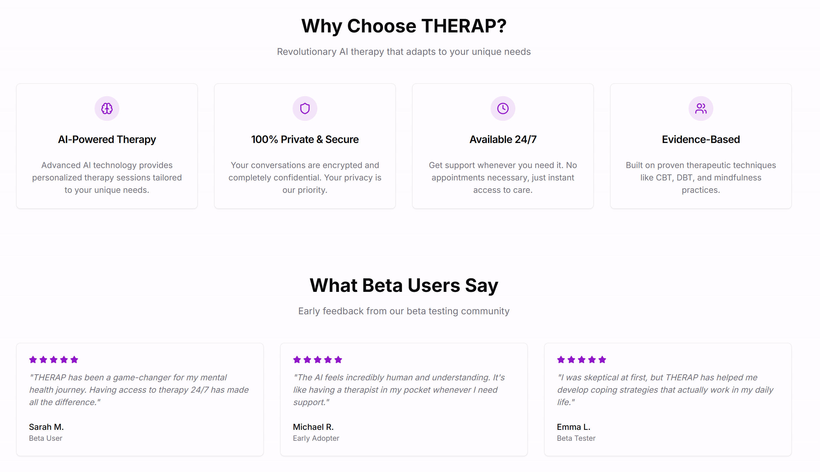 therap是一款AI心理治疗应用,由青少年开发,旨在为同龄人提供心理支持。